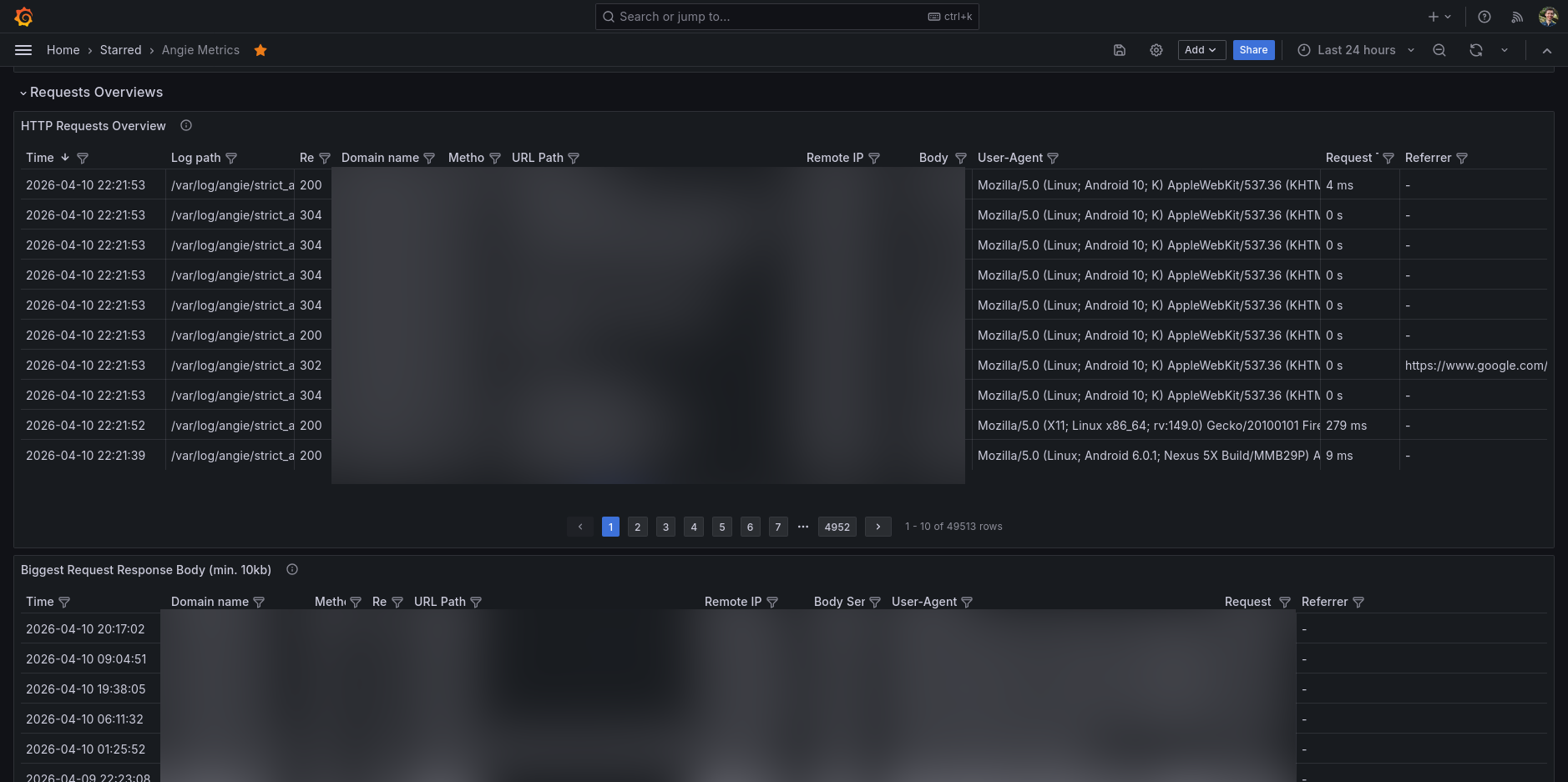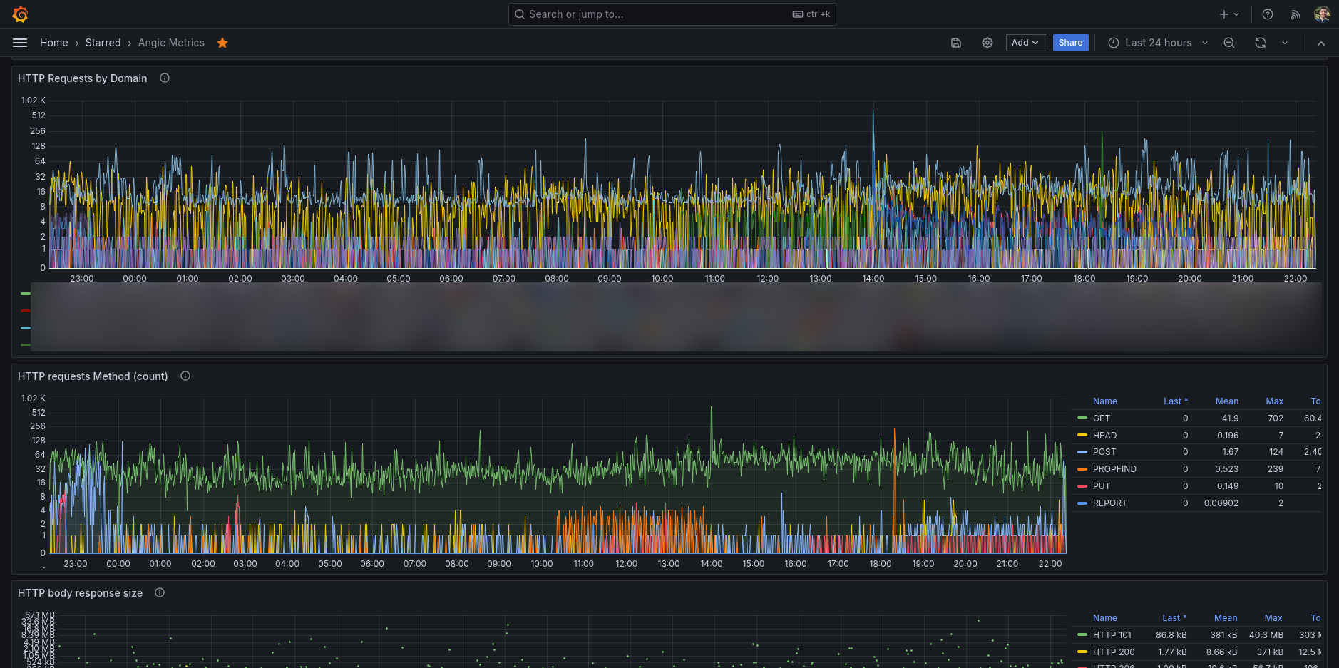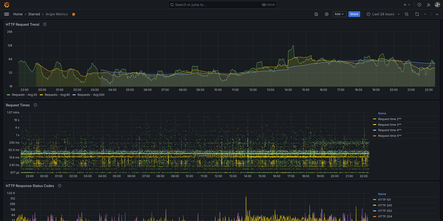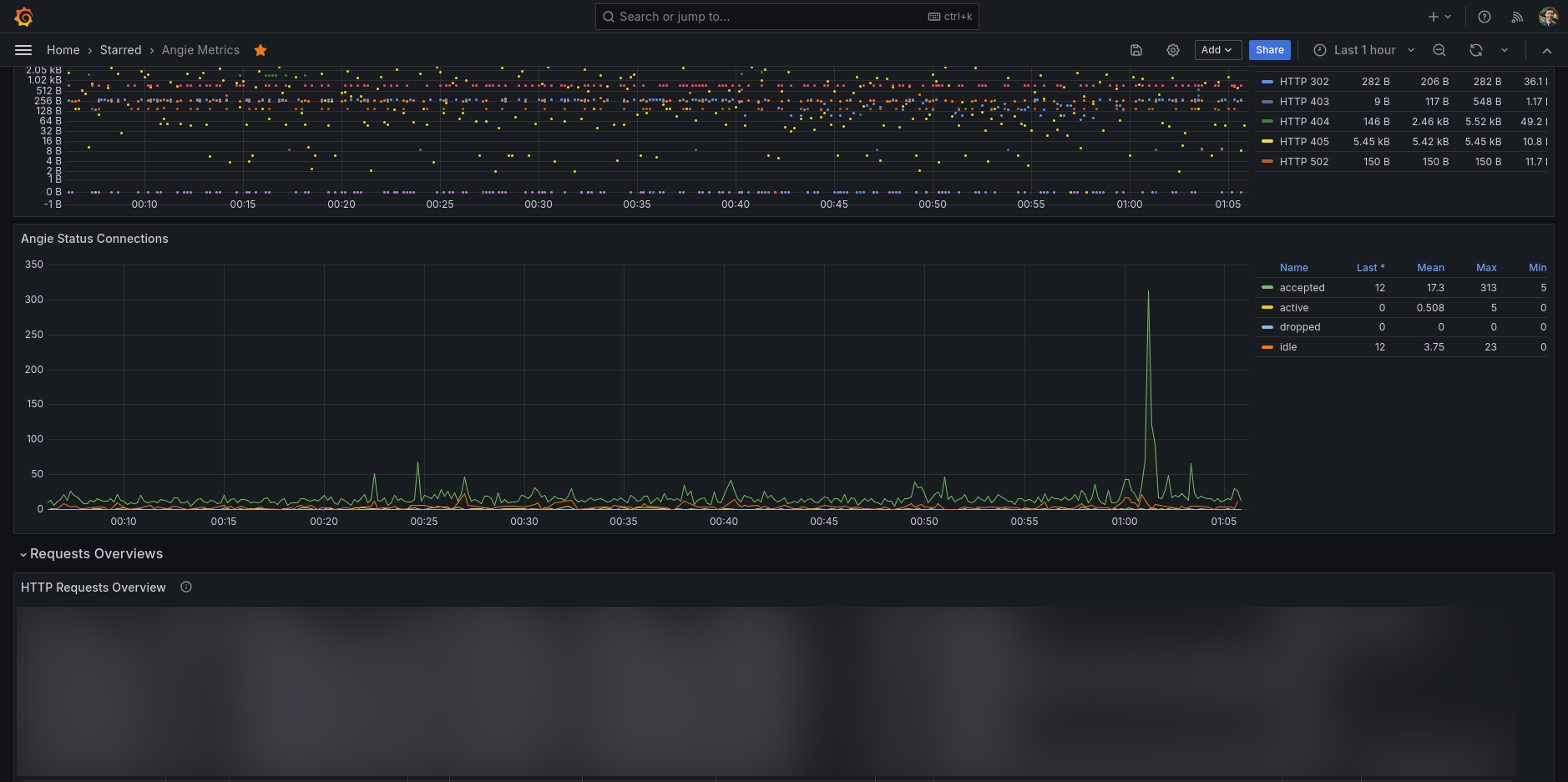 Performance metrics for Angie (using the status API)
