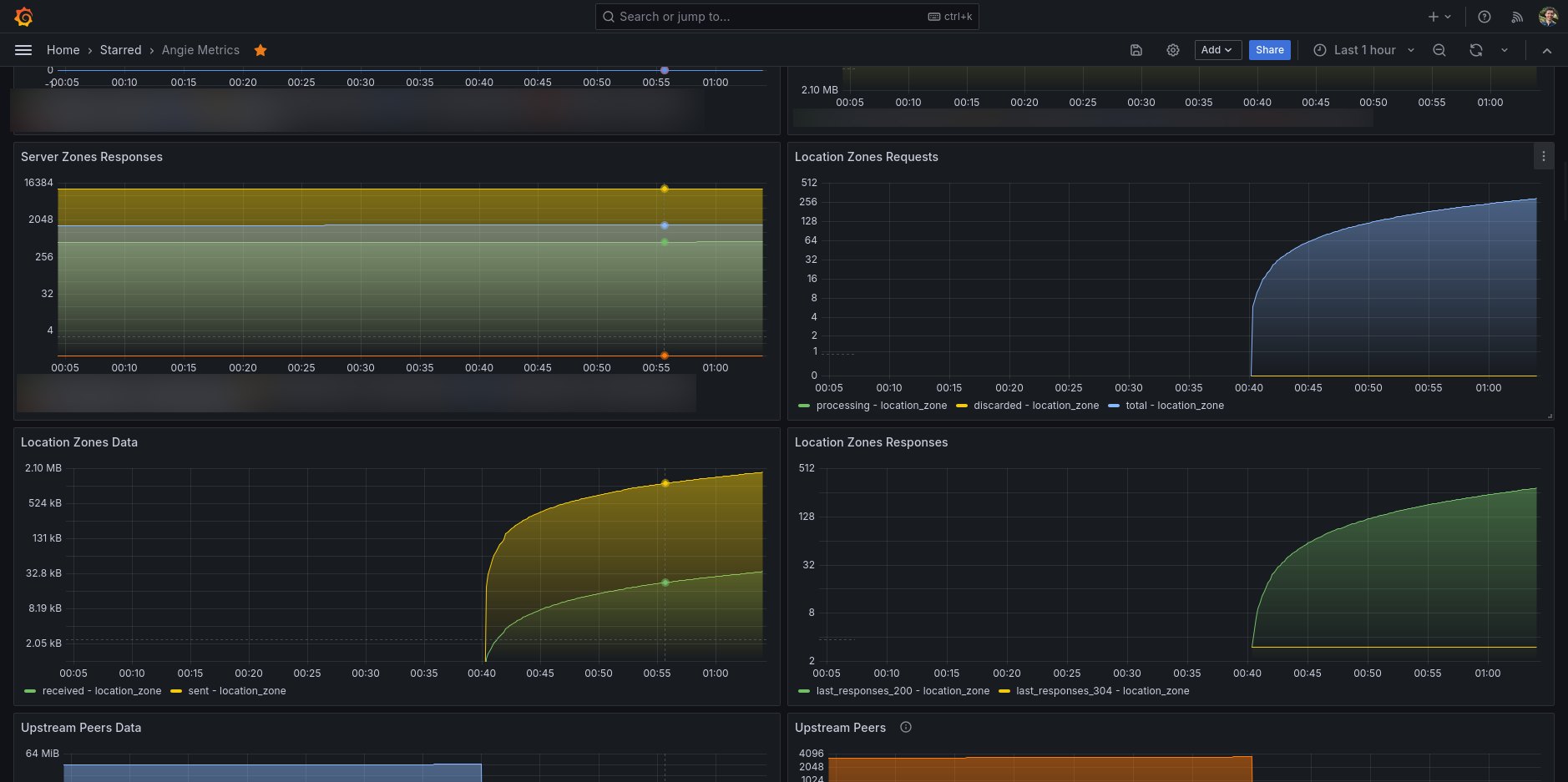 - Add metrics to your server and/or location and/or upstream directives in Angie (see also Angie docs).