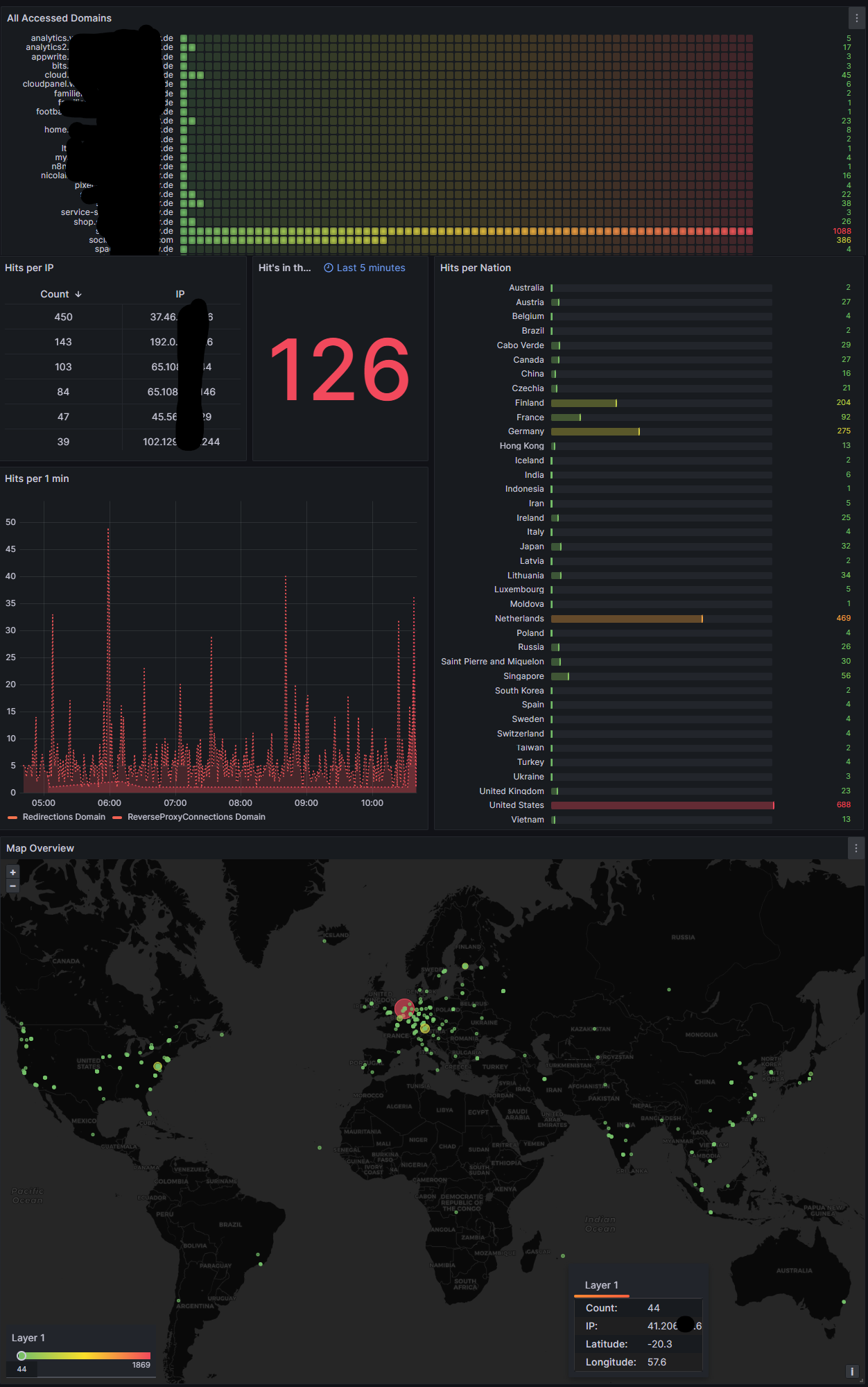 NginxProxyManager Map with InfluxDB2. This needs v3.0.0 or greater of https://github.com/smilebasti/npmGrafStats