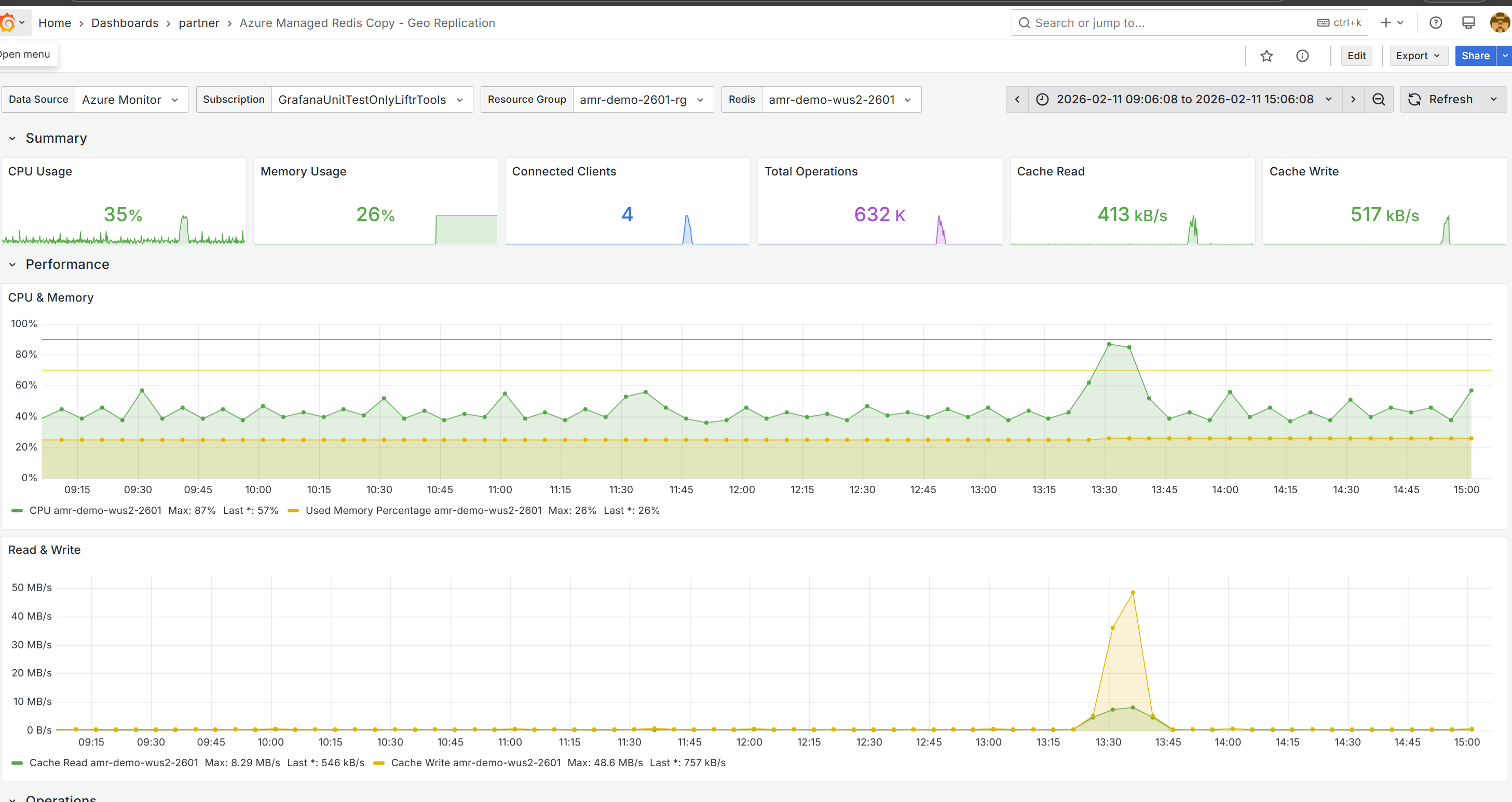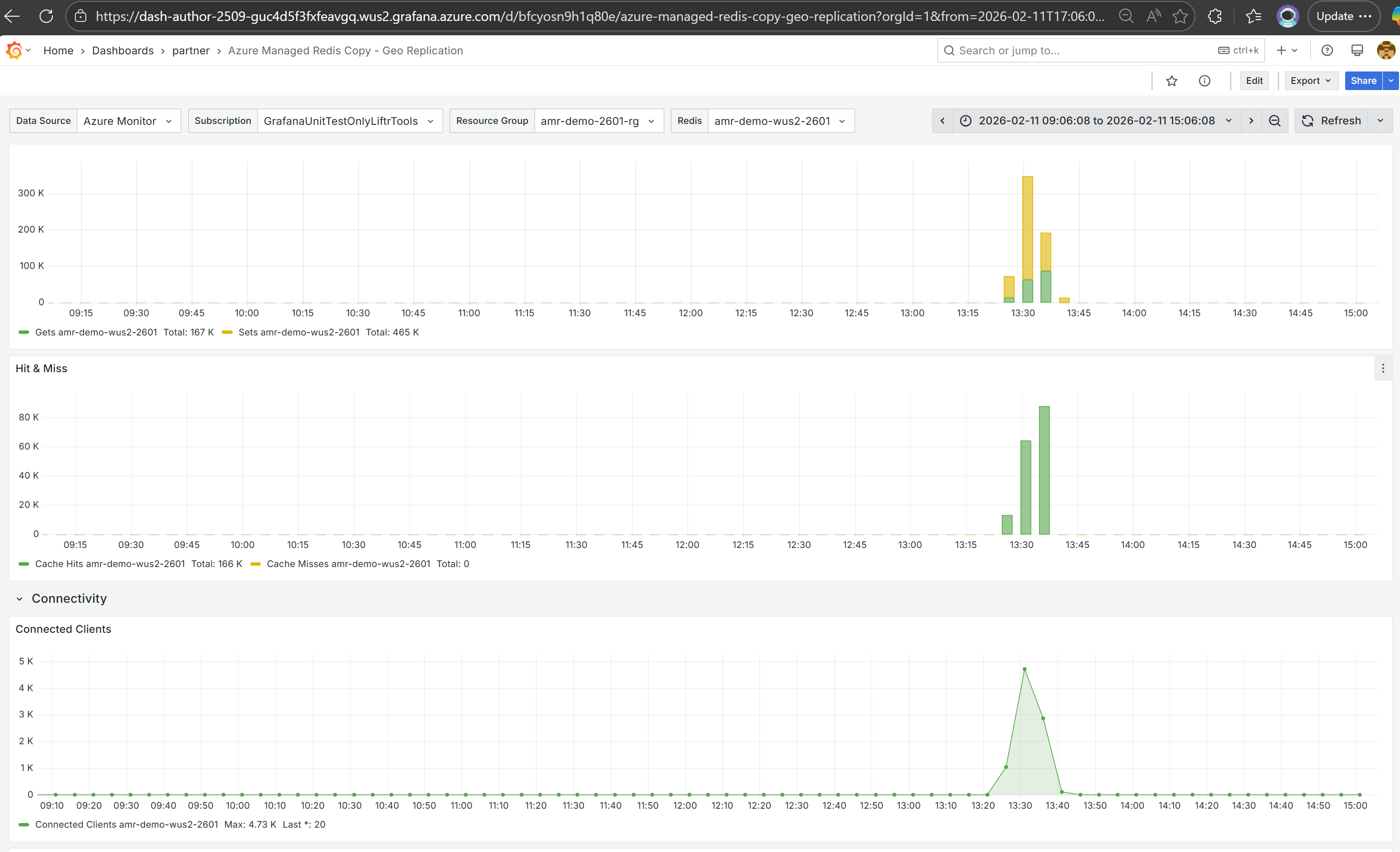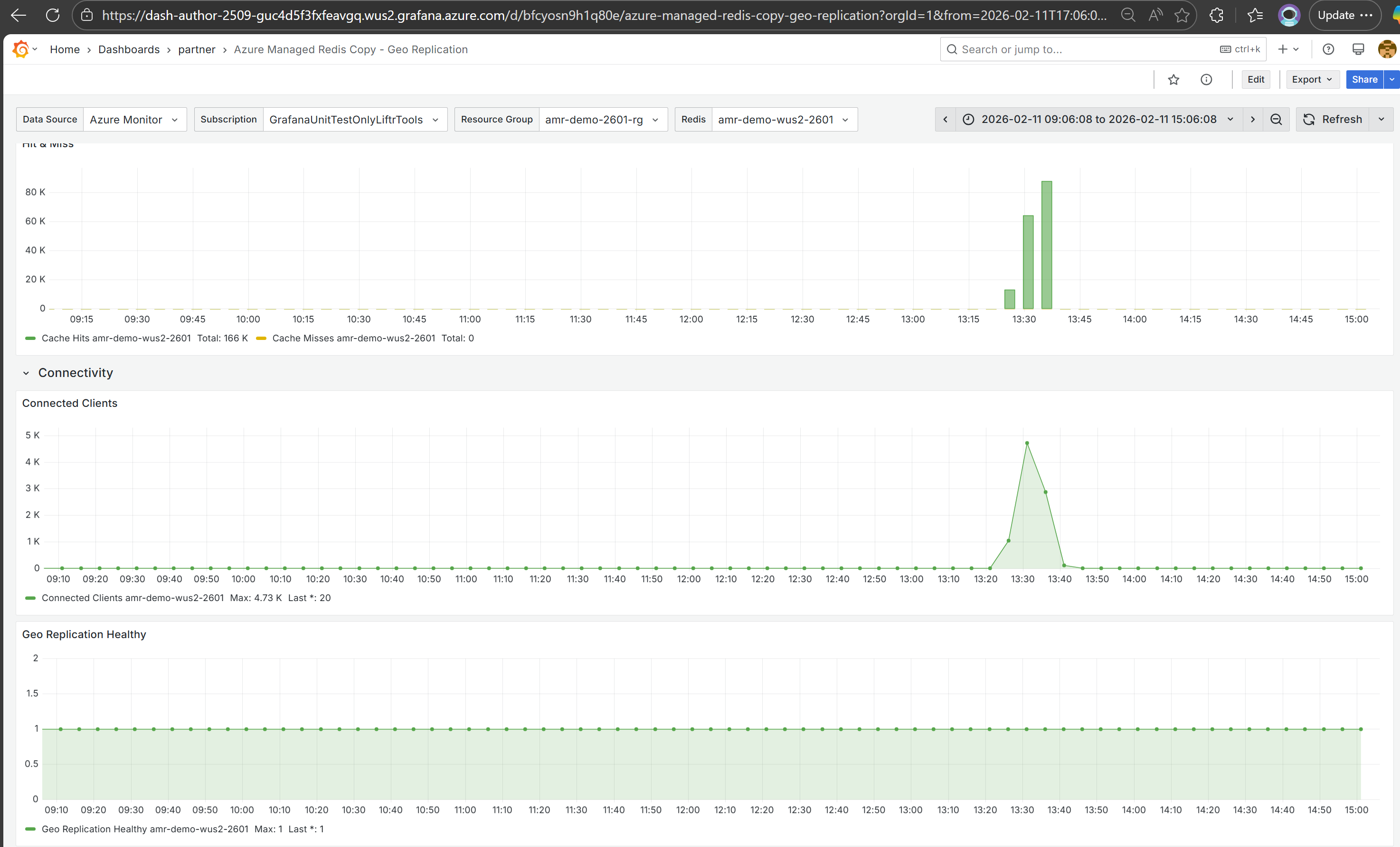 Azure Managed Redis monitoring dashboard