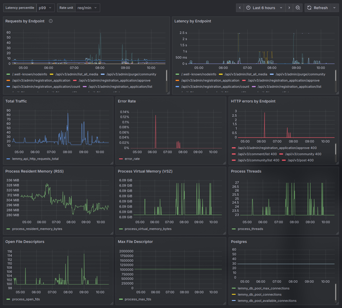 A dashboard for monitoring a Lemmy instance using metrics exposed by Lemmy's built-in Prometheus endpoint.