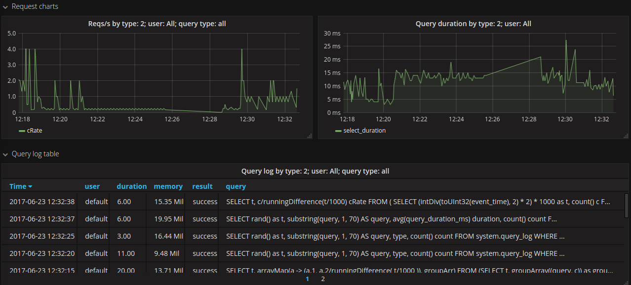 - Request charts - two graphs shows queries-per-second rate and query duration