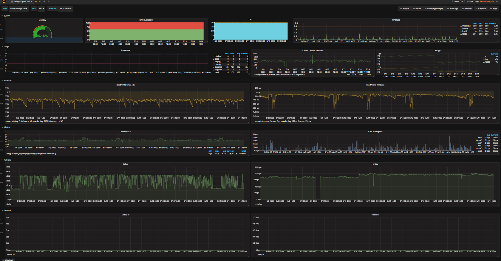 The TelegrafOpenTSDB dashboard uses the opentsdb data source to create a Grafana dashboard with the graph and singlestat panels.