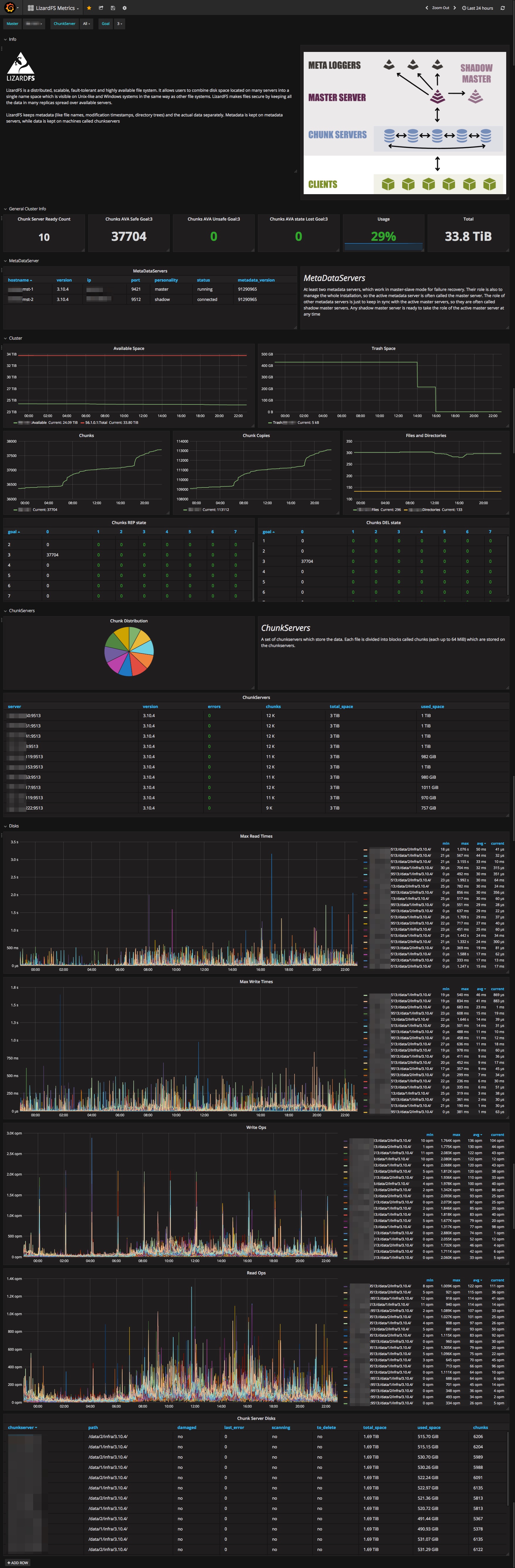 After this it should log the statistics of LizardFS in InfluxDB. Now you can import the dashboard Grafana LizardFS Metrics.json for LizardFS in Grafana.