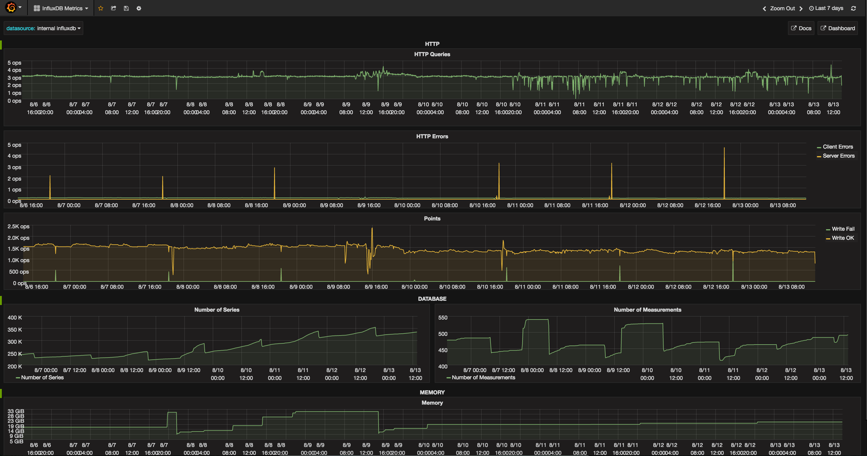 Internal InfluxDB metrics pulled from telegraf.