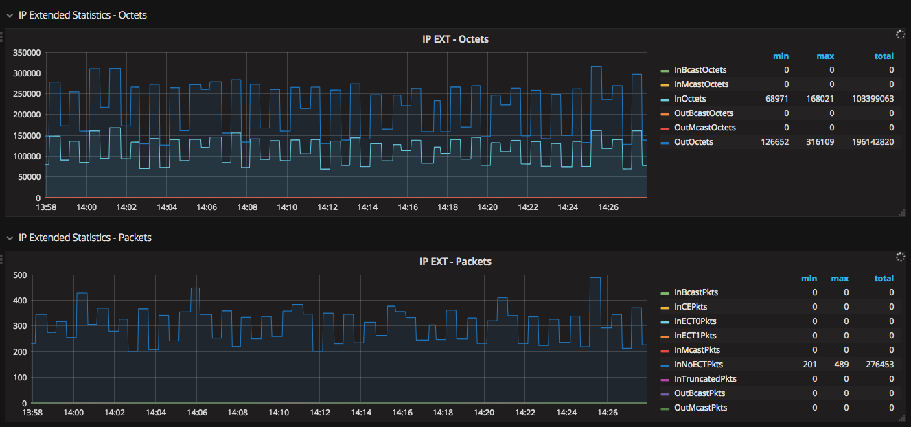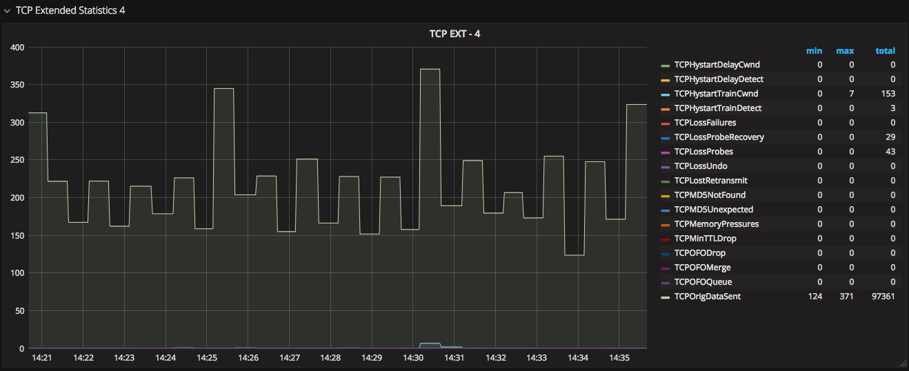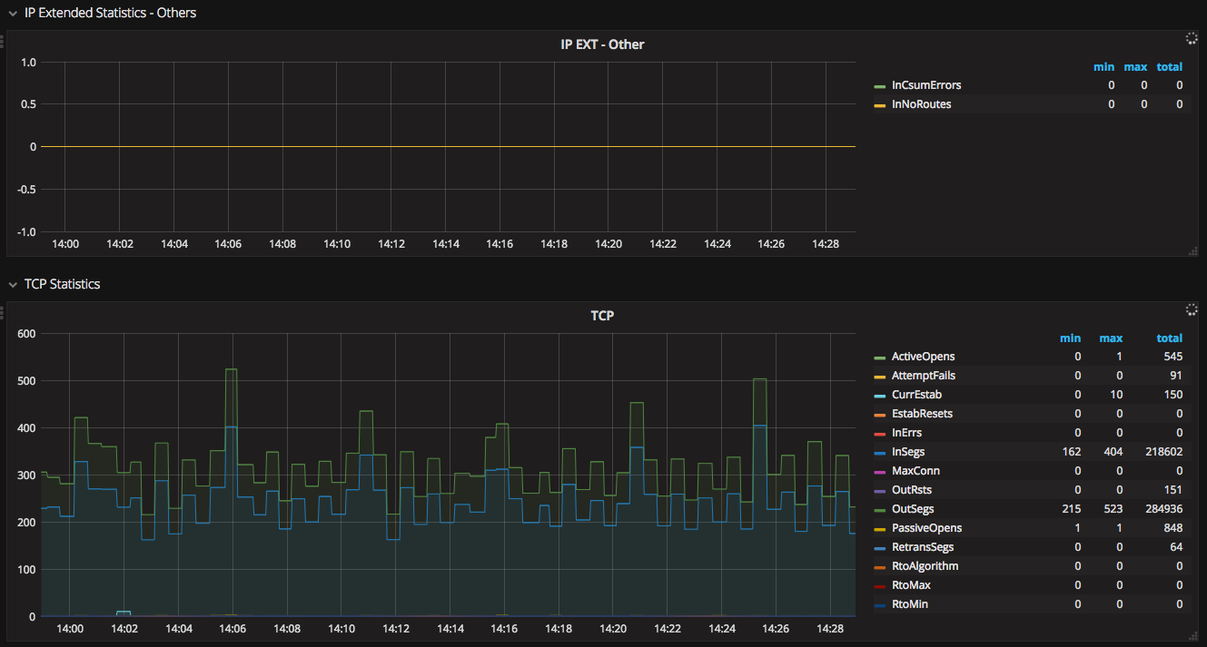 Netstat Kubernetes Dashboard with all metrics exposed by Netstat: