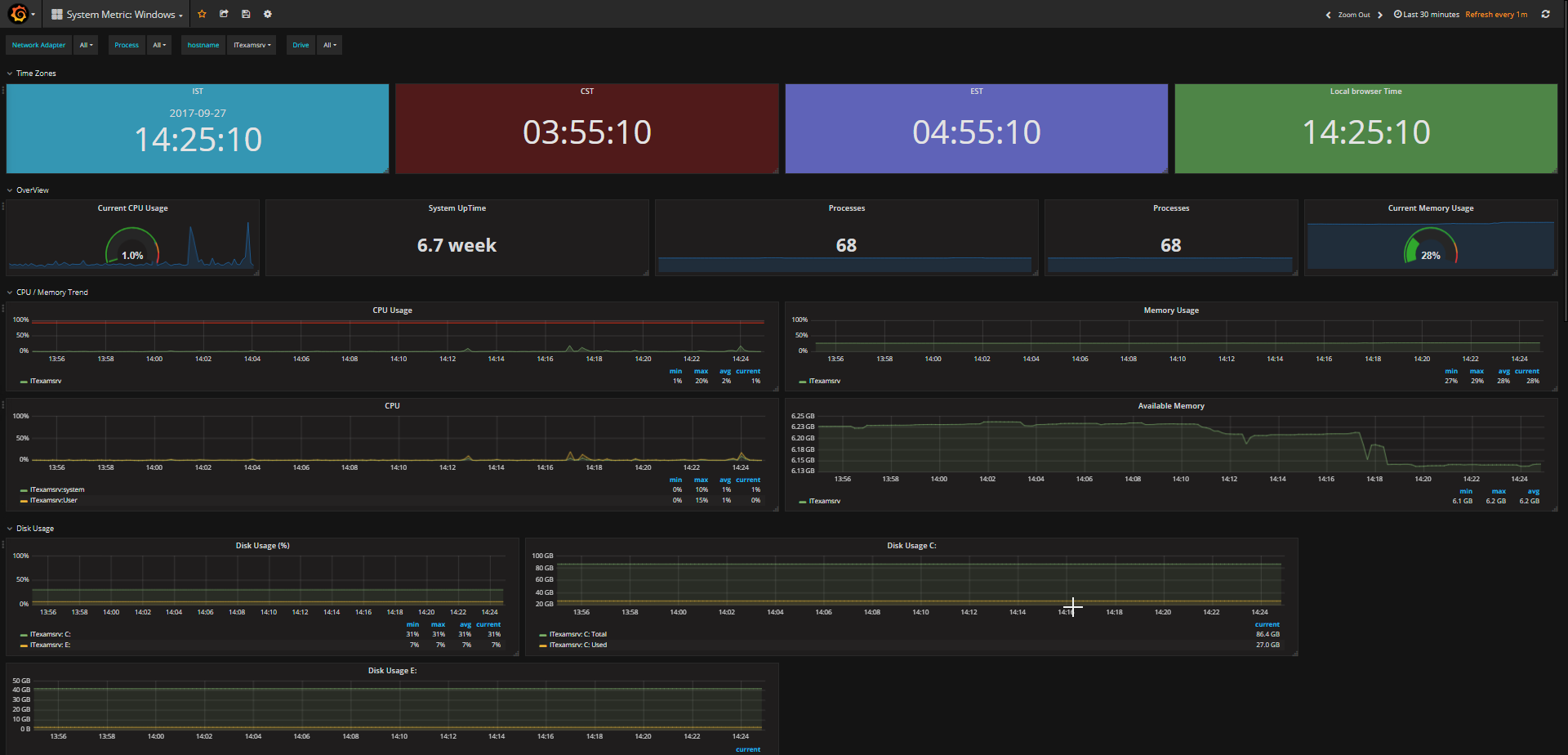 You will find this dashboard useful if you are looking for capturing windows host metrics.