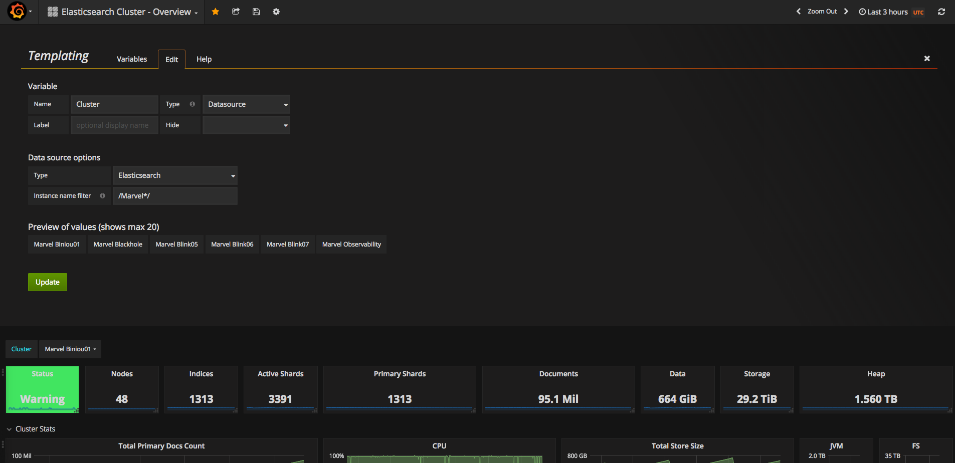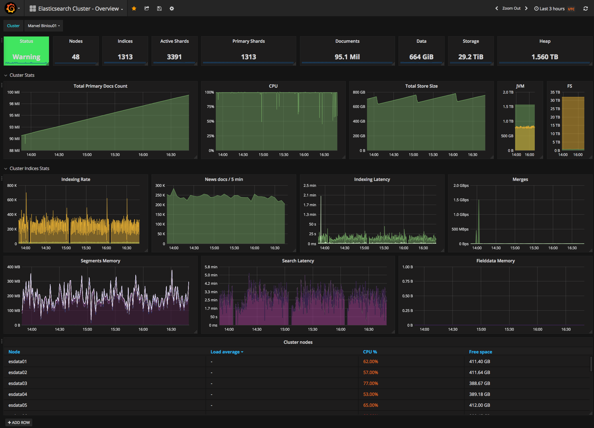 See https://grafana.com/dashboards/3595 for the node dashboard See https://grafana.com/dashboards/3598 for the indices dashboard