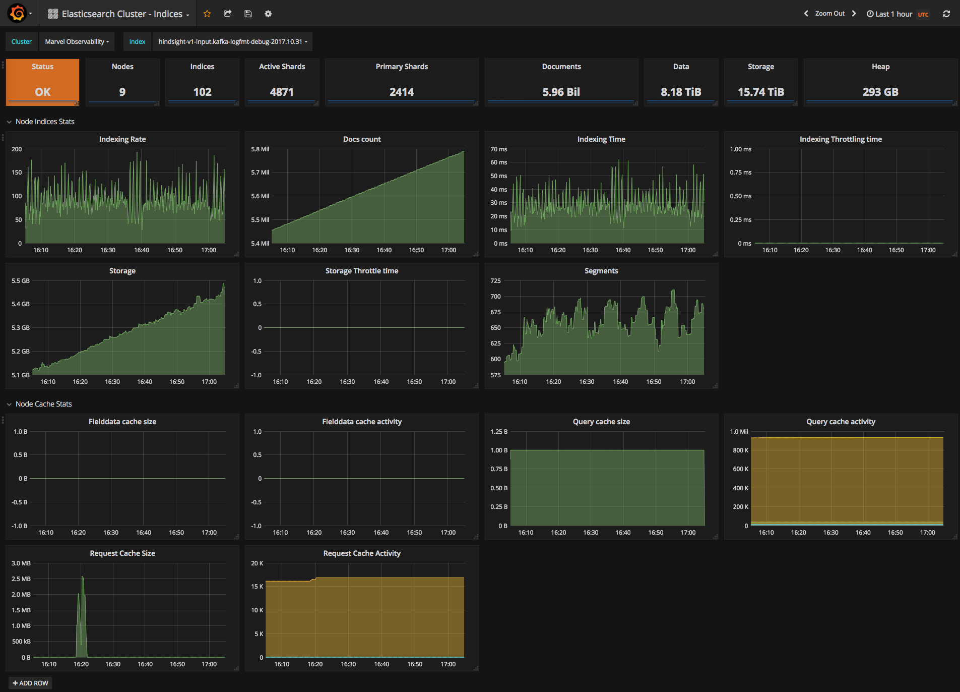 This dashboard is the last of 3 to monitor a cluster using the data collected through the x-pack monitoring collector. It takes data sources starting with Monitoring so you don't confuse your monitoring and production clusters.