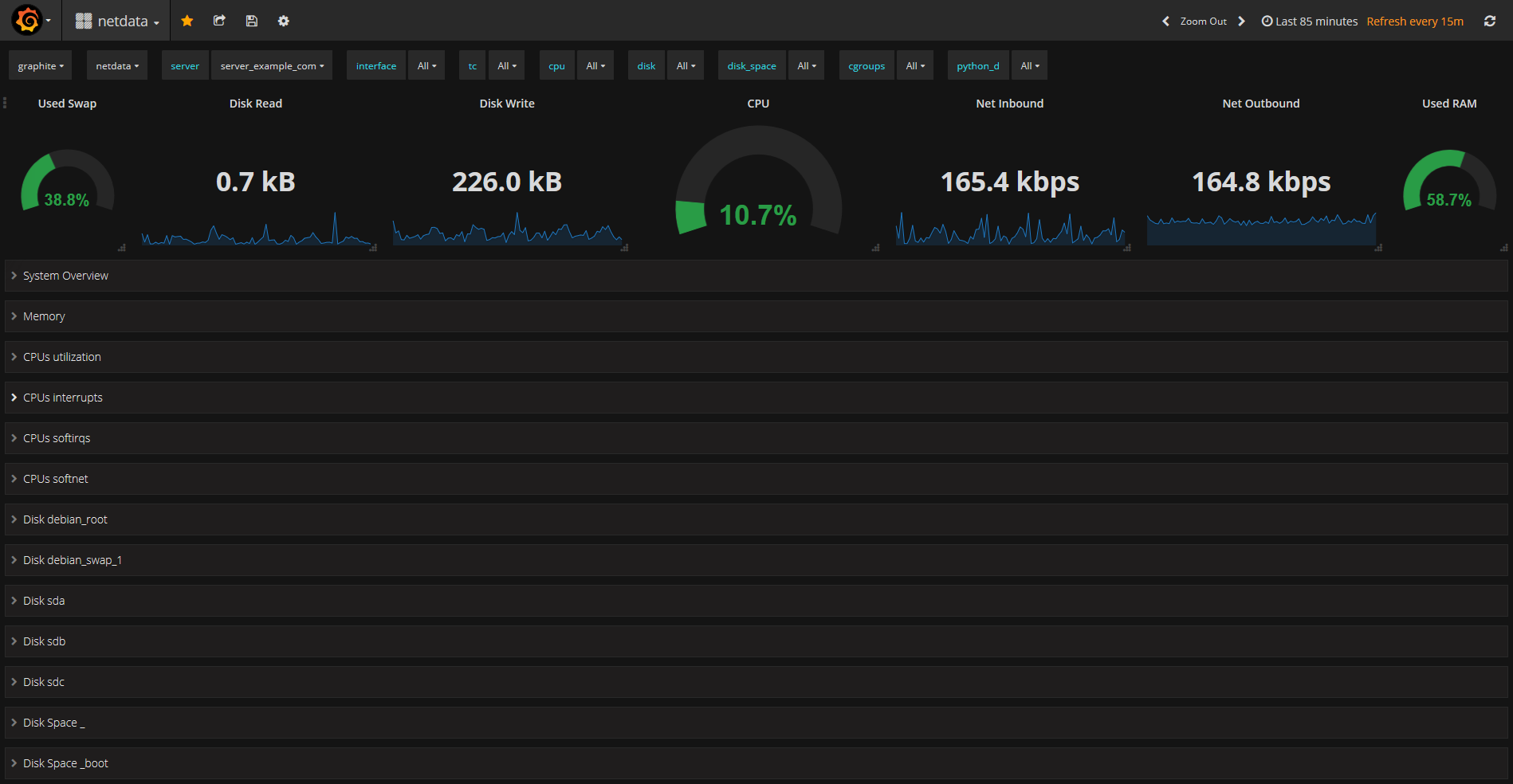 Metrics provided by netdata, written into Graphite and displayed via Grafana!