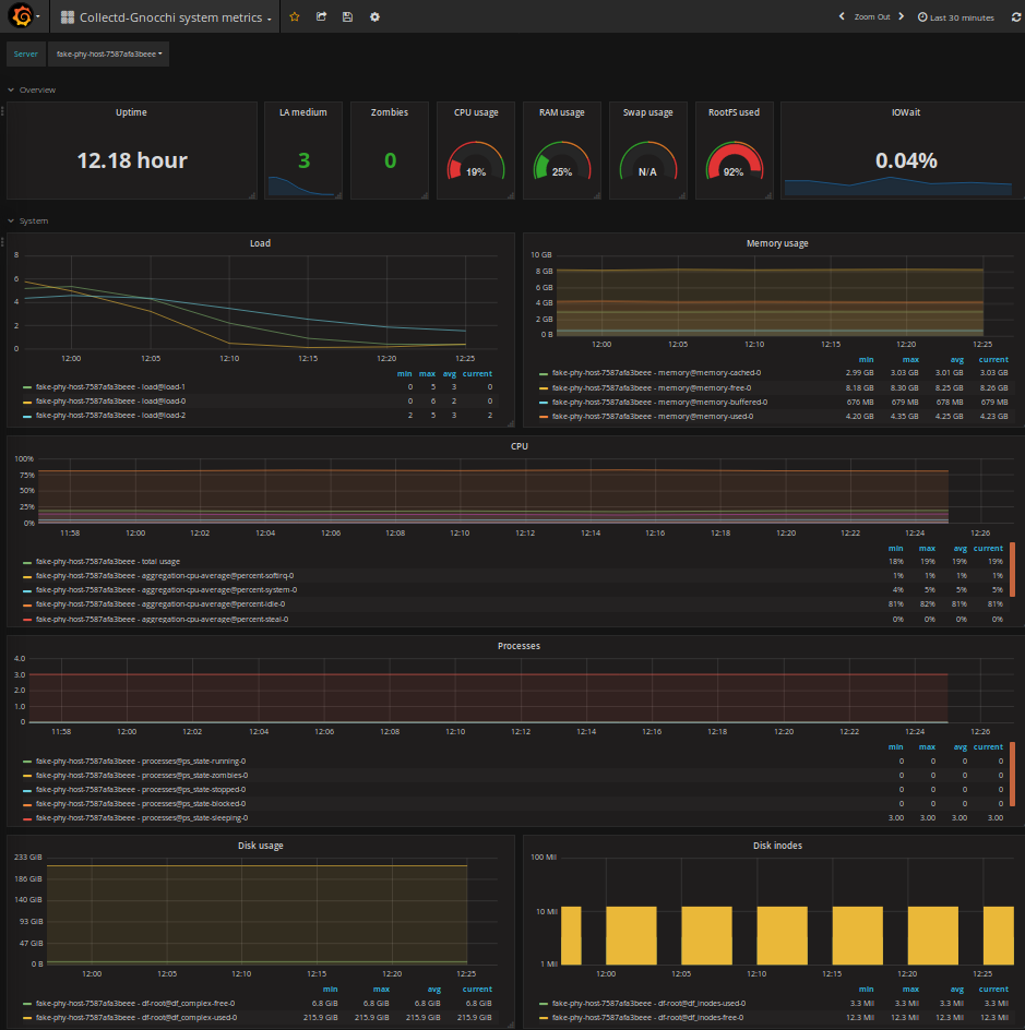 Example of dashboard of System metrics collected by Collectd and stored in Gnocchi >= 4.1
