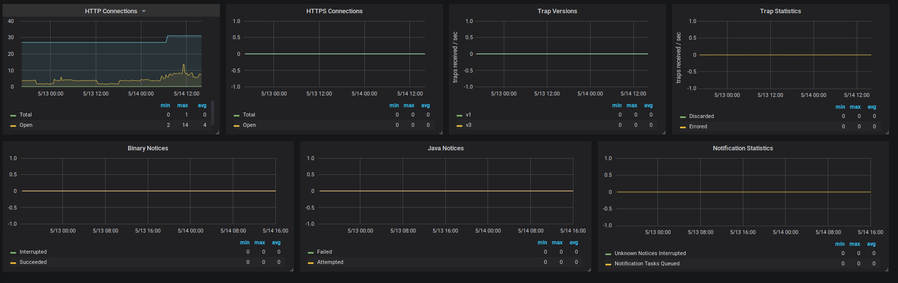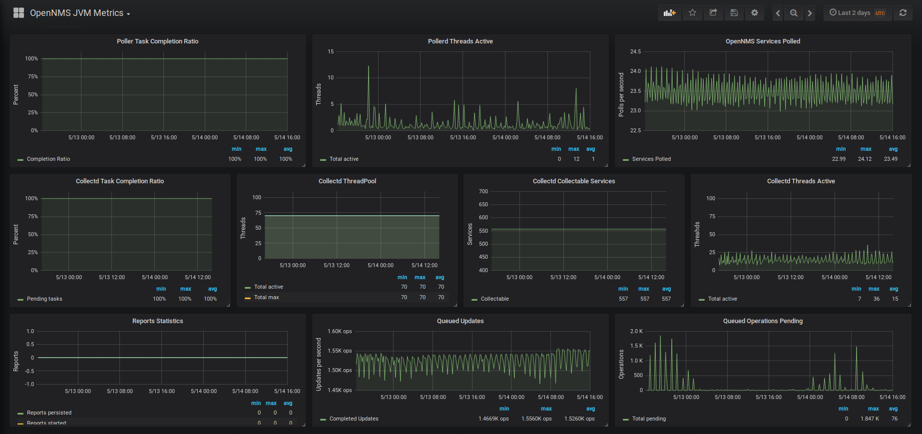 If you find errors or have enhancements, feel free to create a pull request in our Github repo: https://github.com/opennms-forge/grafana-dashboards/tree/master/OpenNMS-JVM-Metrics
