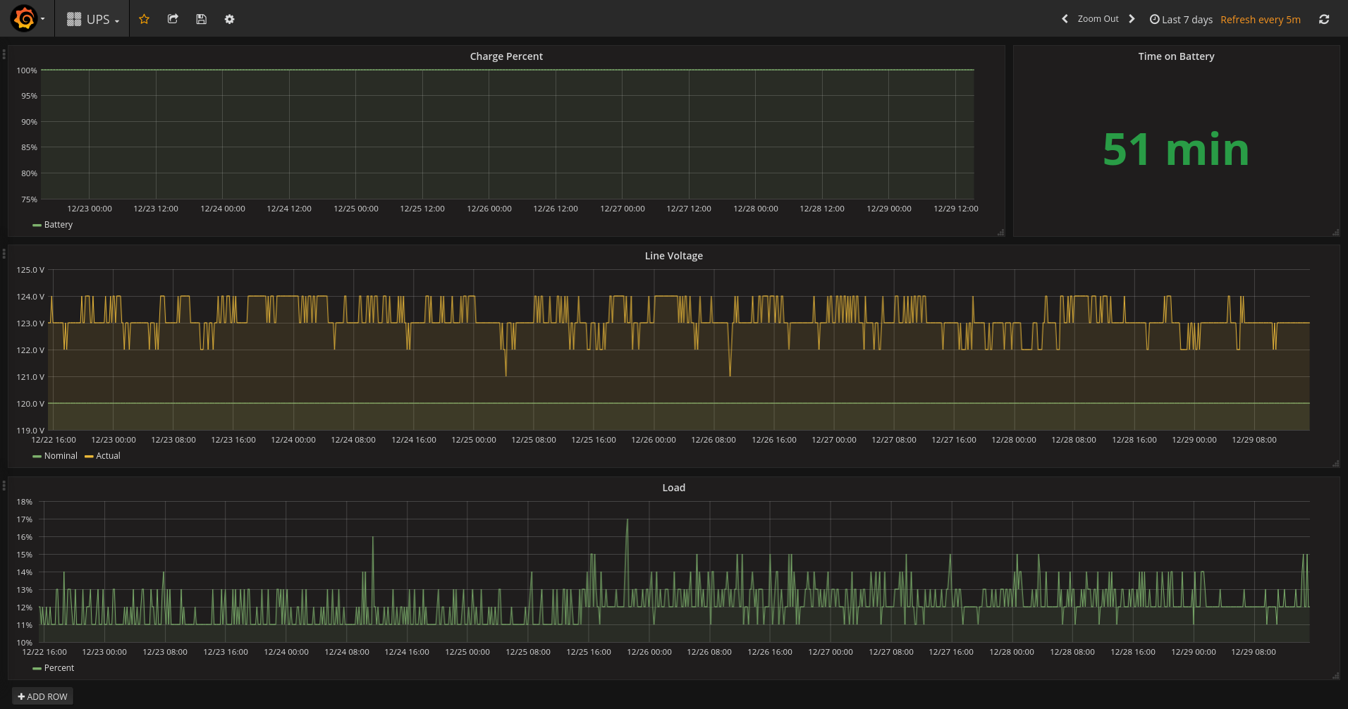 Simple Dashboard to view APC UPS statistics. Currently includes: