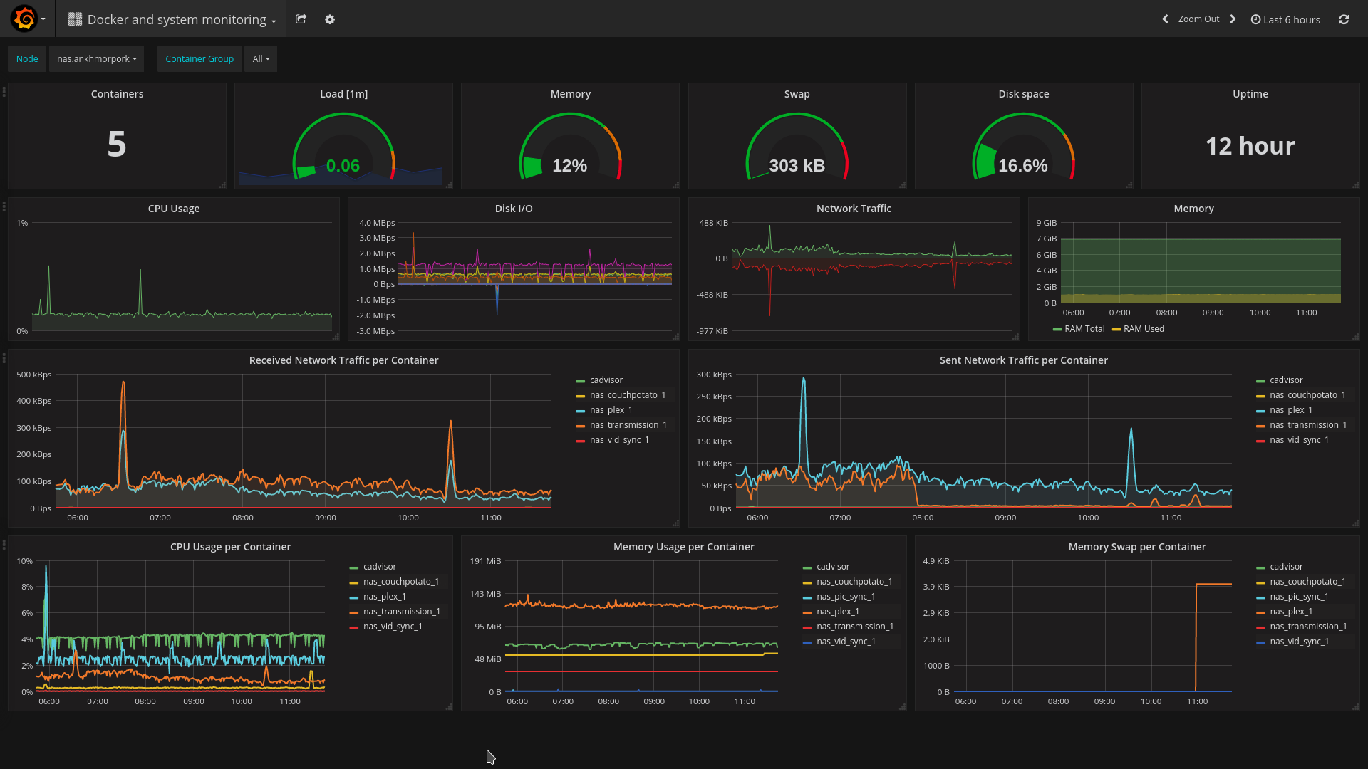 A simple overview of the most important Docker host and container metrics. (cAdvisor/Prometheus)