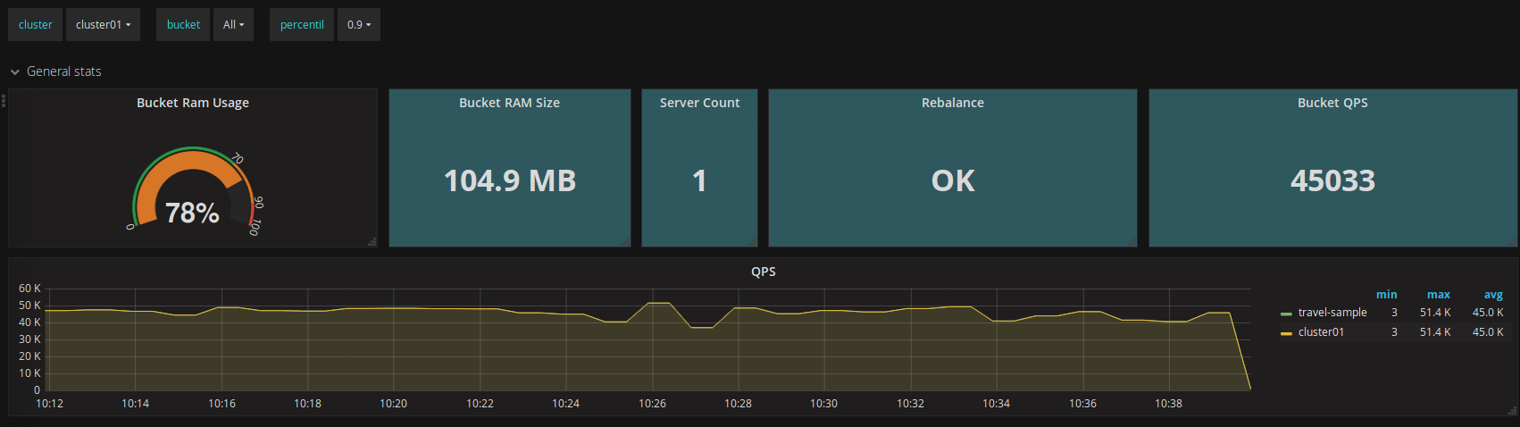 Couchbase dashboard based on prometheus metrics exported by our Couchbase Java probe Mewpoke.