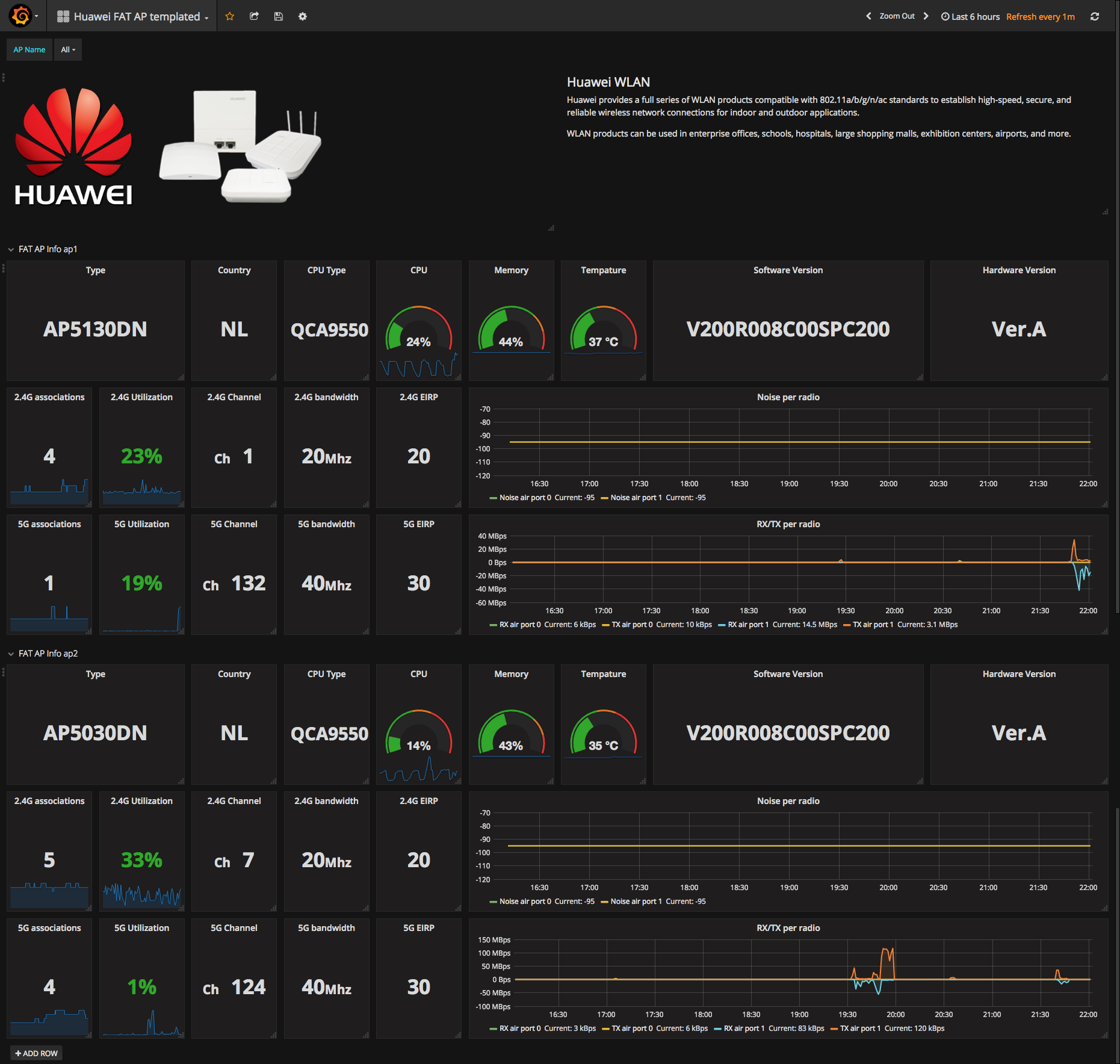A templated Dashboard for Huawei Fat WLAN AP in Grafana