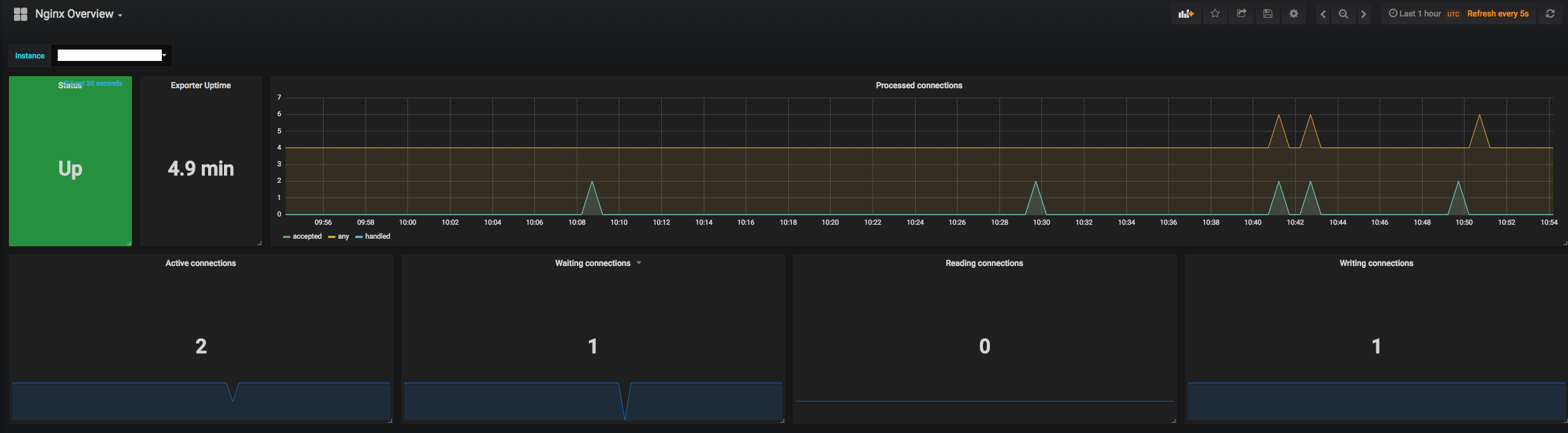Dashboard for nginx exporter https://github.com/discordianfish/nginx_exporter/blob/master/nginx_exporter.go