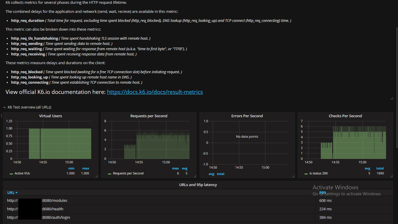 A dashboard for visualizing results from the k6.io load testing tool, using the InfluxDB exporter. Based on https://grafana.com/dashboards/2587