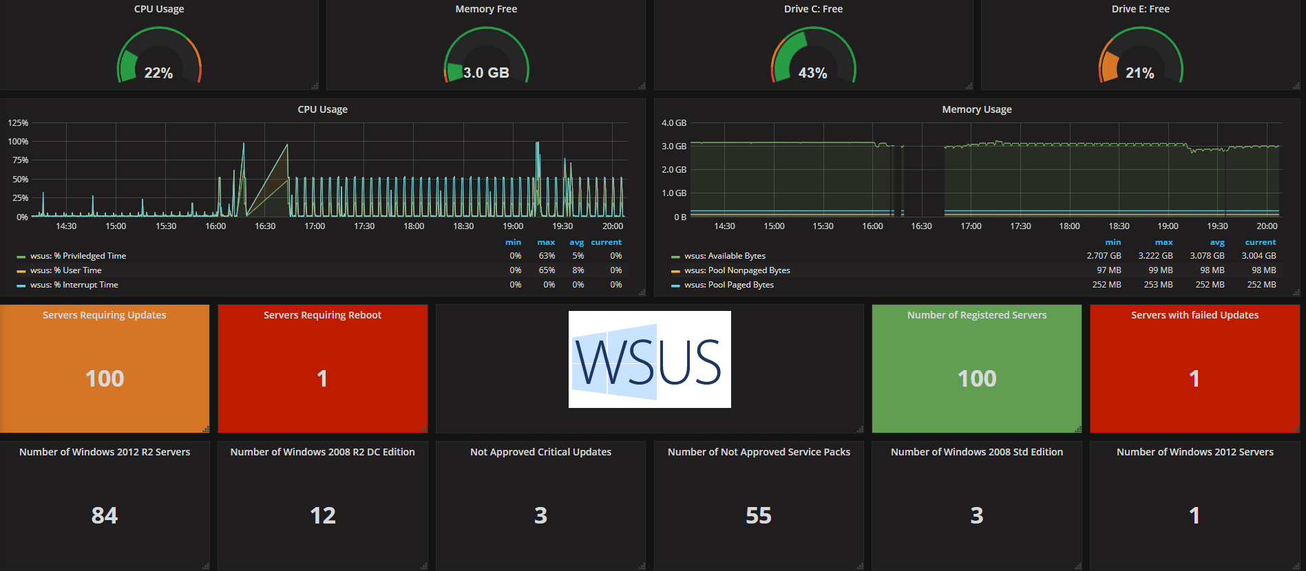 Further information and installation of the dashboard and script can be found within github. https://github.com/r4yfx/wsus-grafana