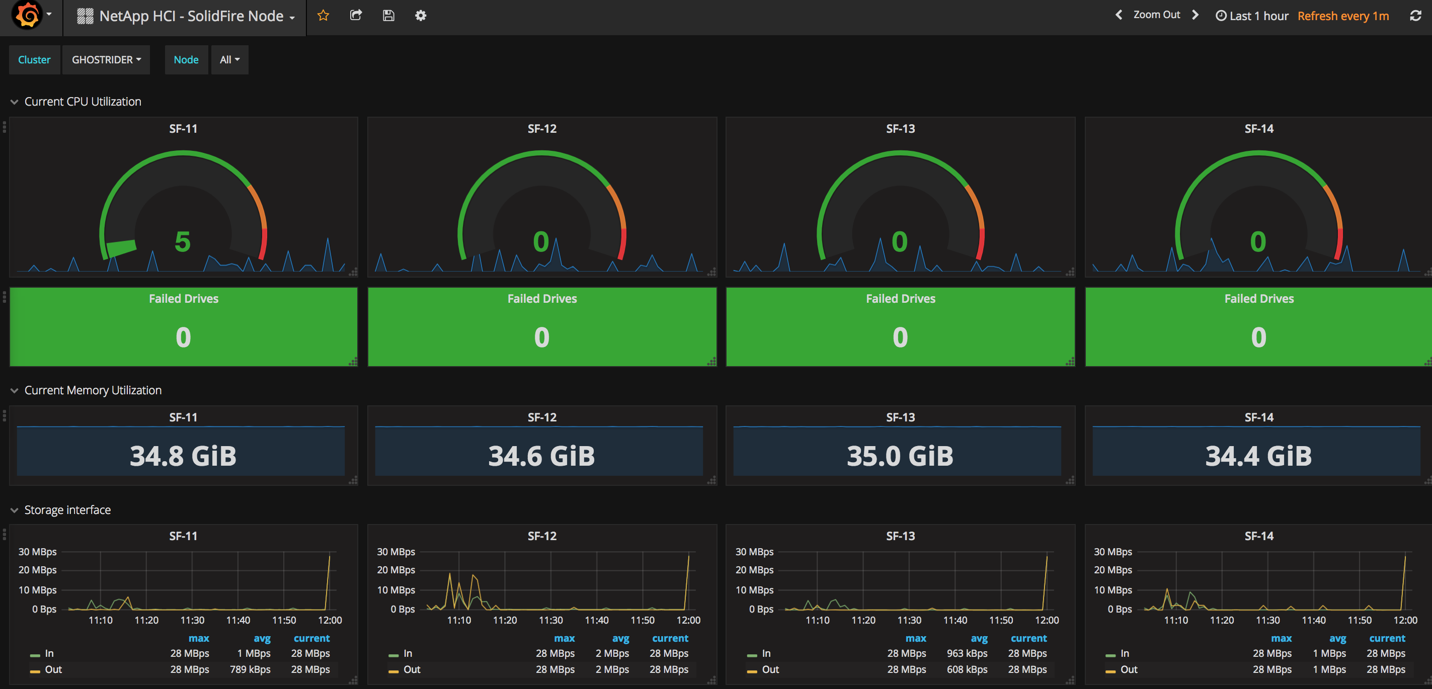 Per node statistics for a SolidFire cluster