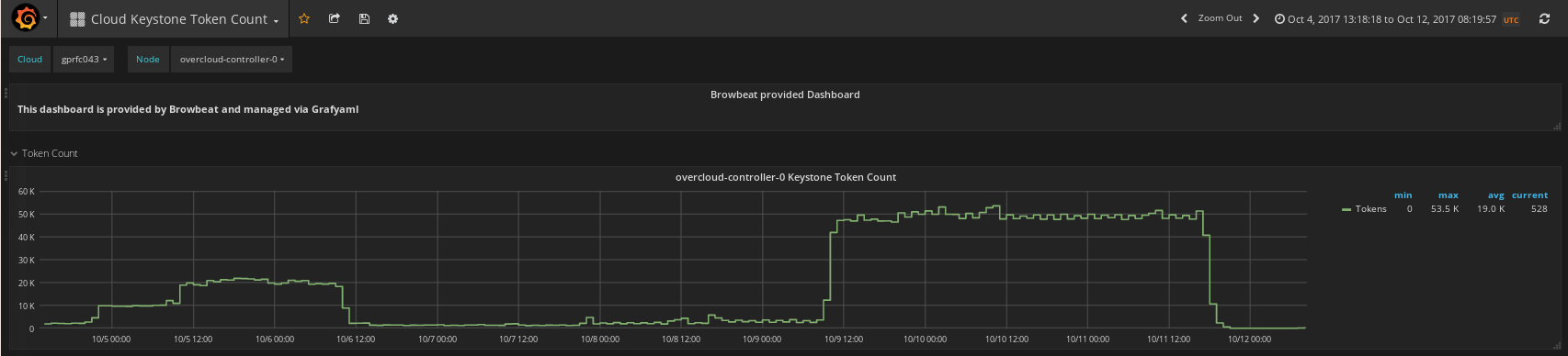 Displays OpenStack Keystone token count (UUID Tokens) exposed from the Keystone Database via collectd.