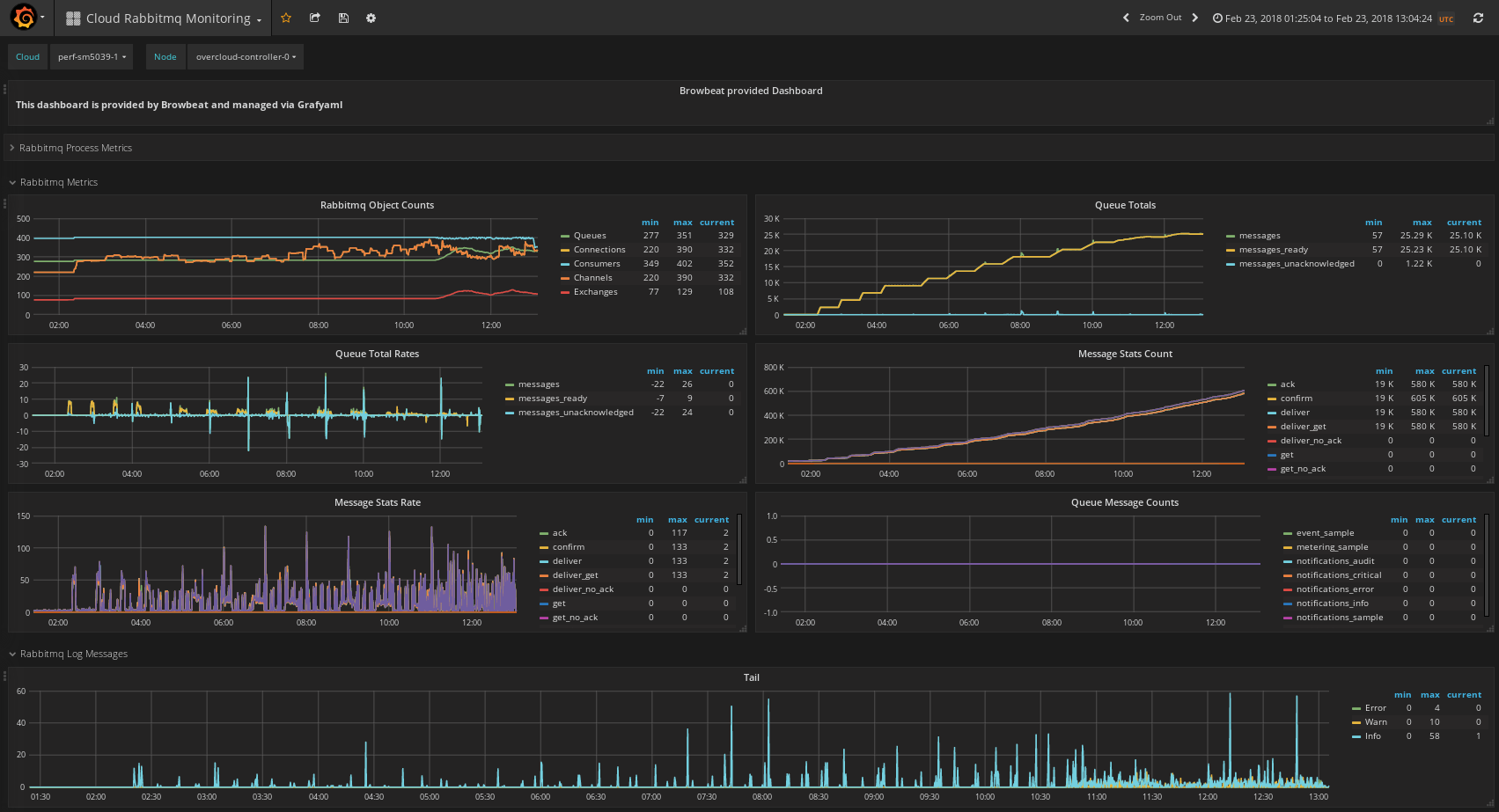 Displays Metrics on Rabbitmq captured by processes, collectd-rabbitmq-monitoring (https://github.com/akrzos/collectd-rabbitmq-monitoring) and tail collectd plugins.