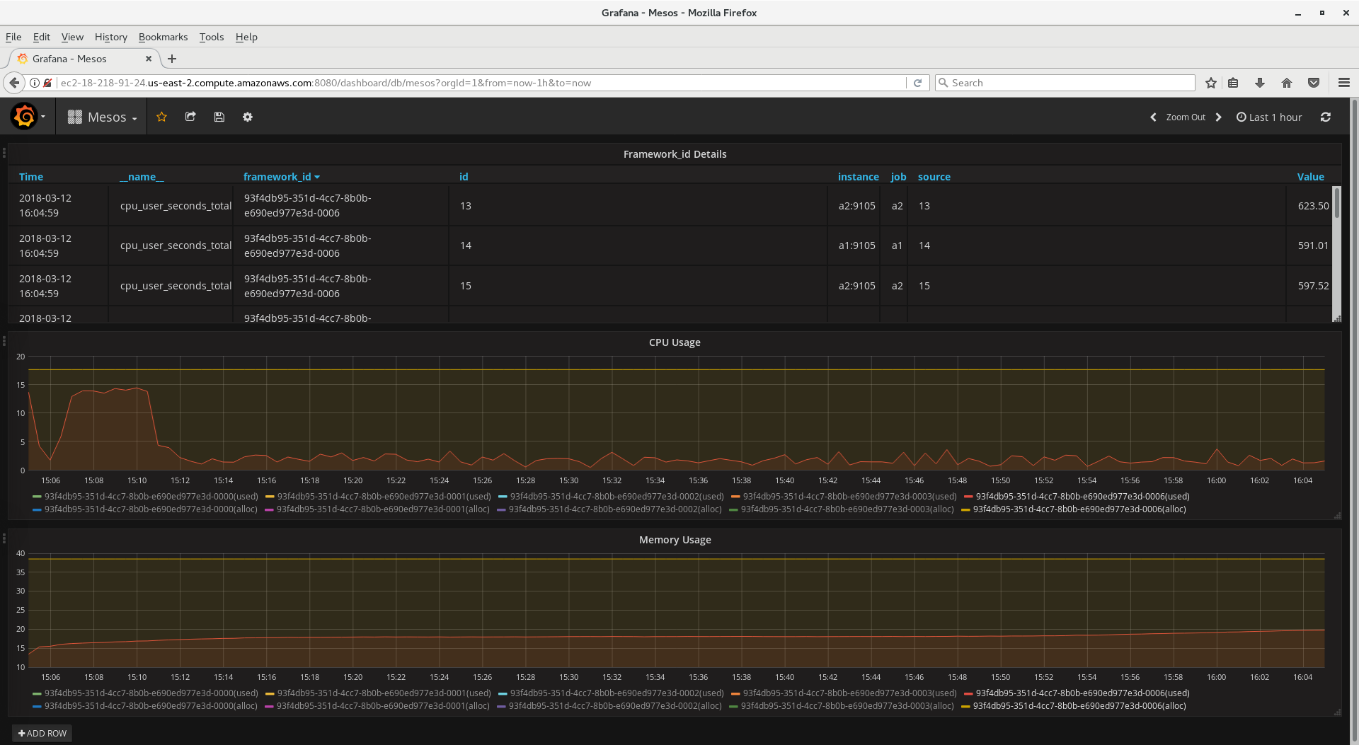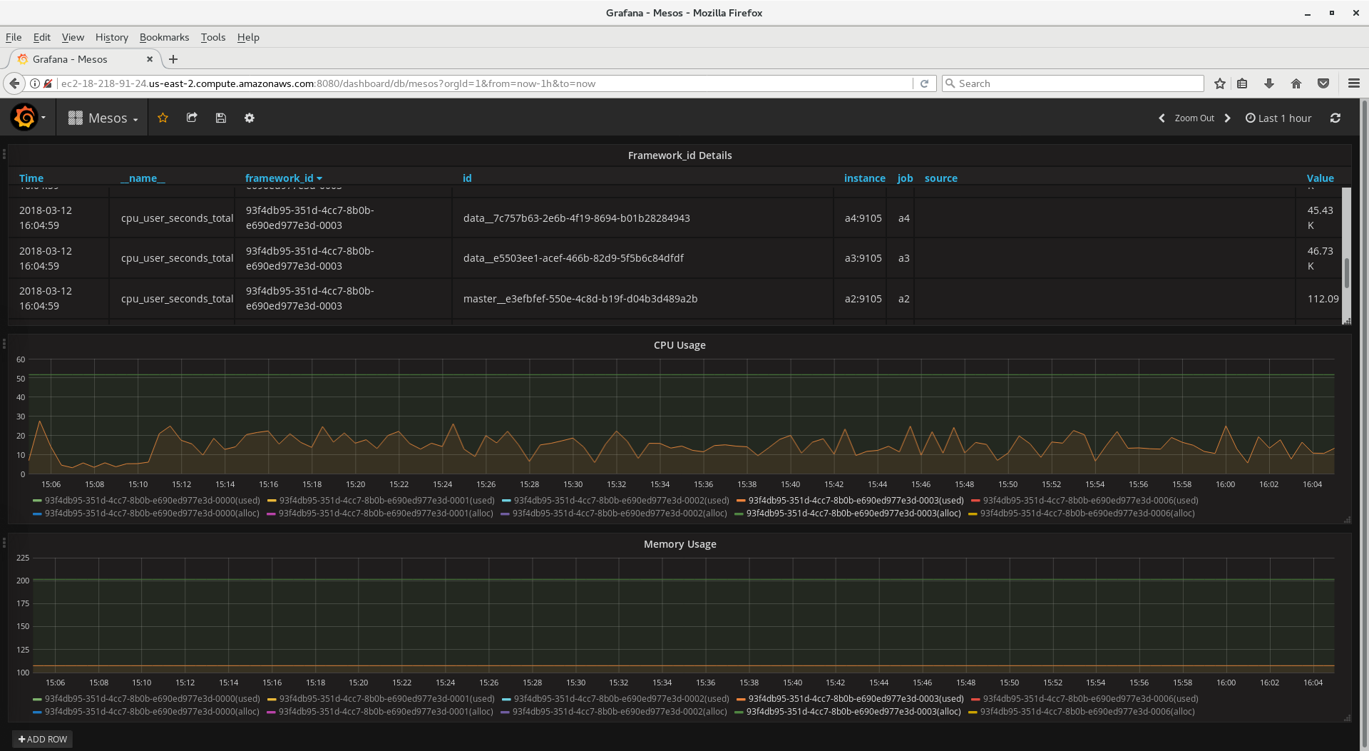 - CPU Usage (Allocated and Used) by FrameworkID
