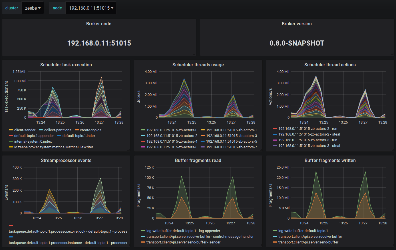 Low-level diagnostic Zeebe.io broker metrics via Prometheus.