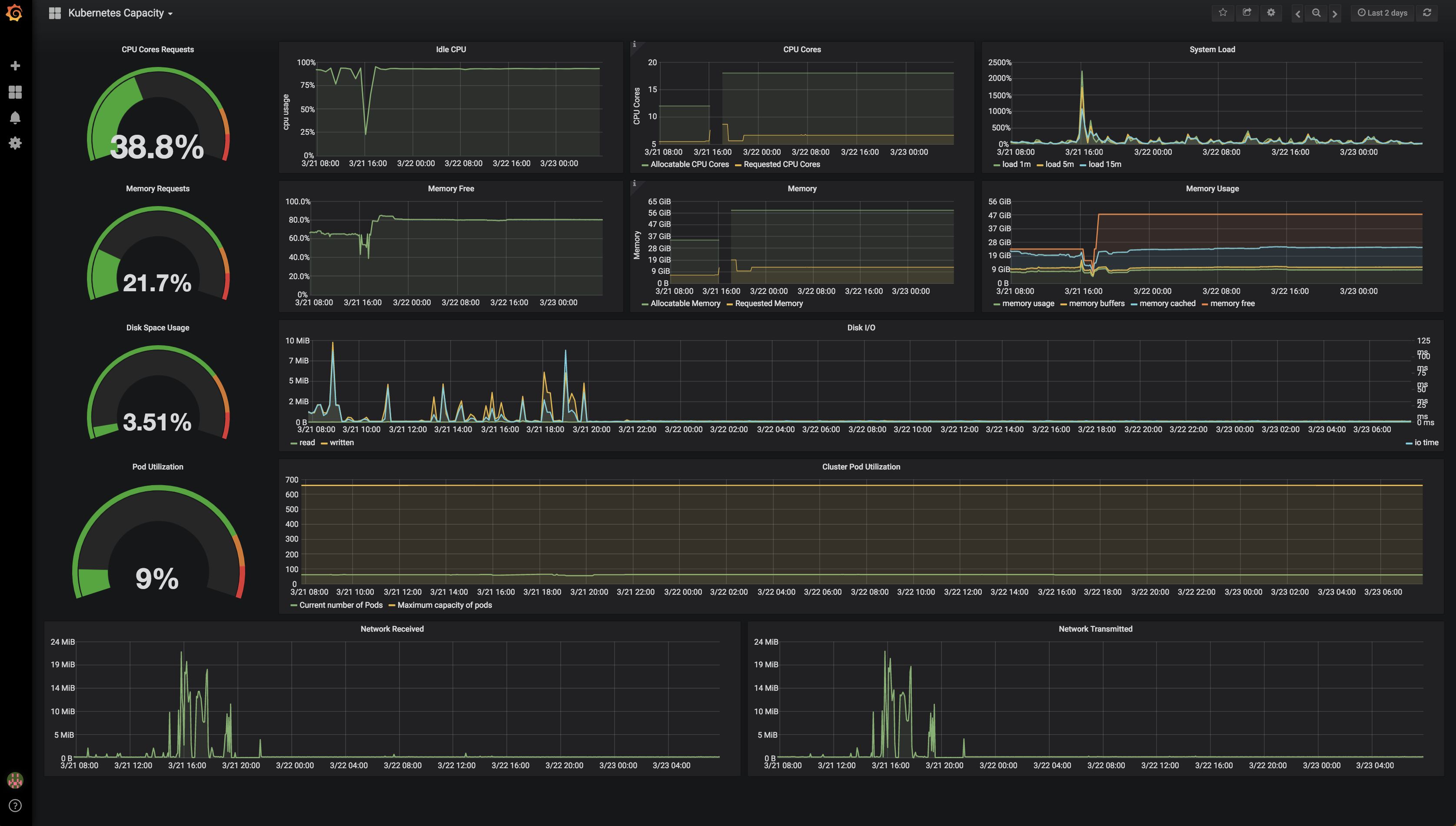Monitor your Kubernetes deployment with prebuilt visualizations that allow you to drill down from a high-level cluster overview to pod-specific details in minutes.