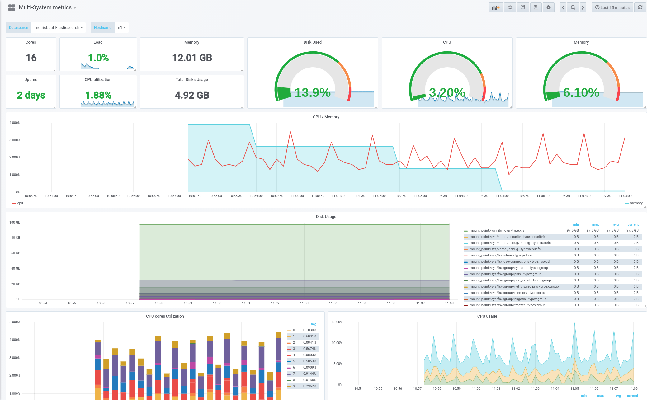 Multi-system dashboard used to visualize metrics produced by metricbeat.