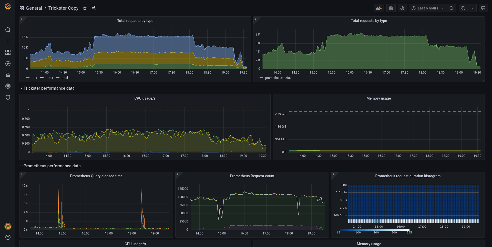 - Trickster's own metrics (for most of the important data)