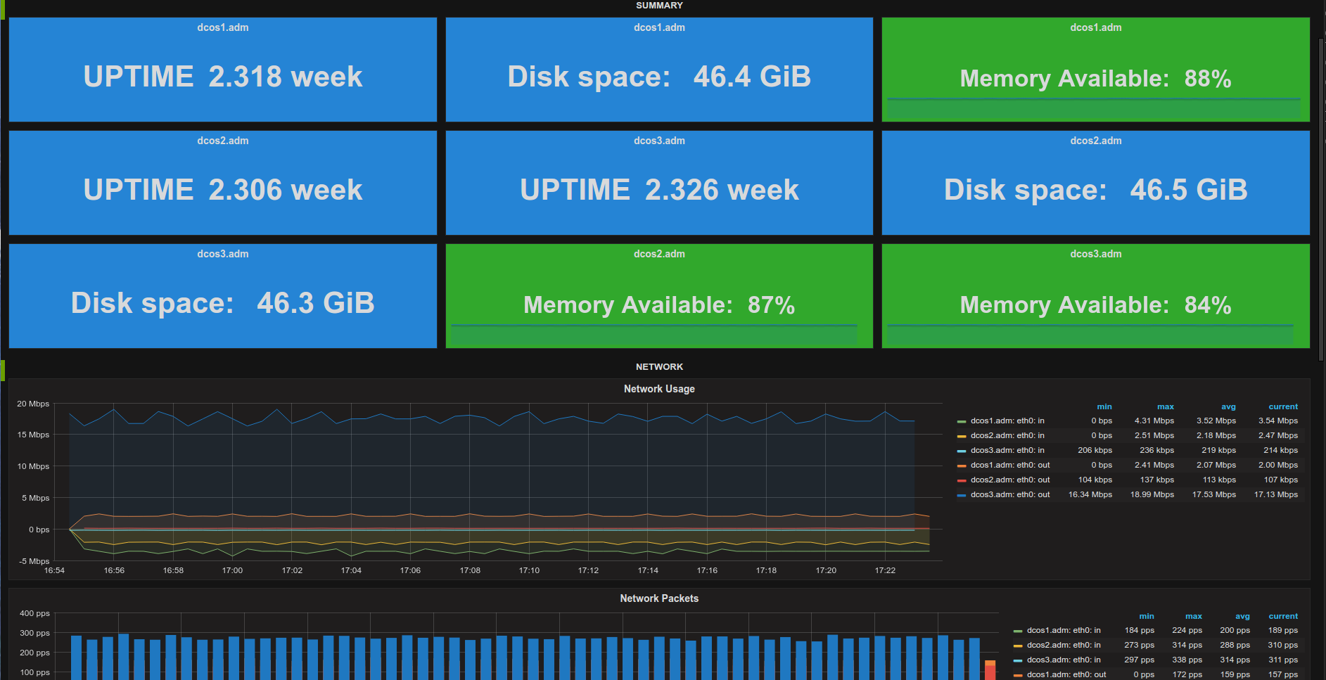 Dashboard for Telegraf plugins and system/network metrics.
