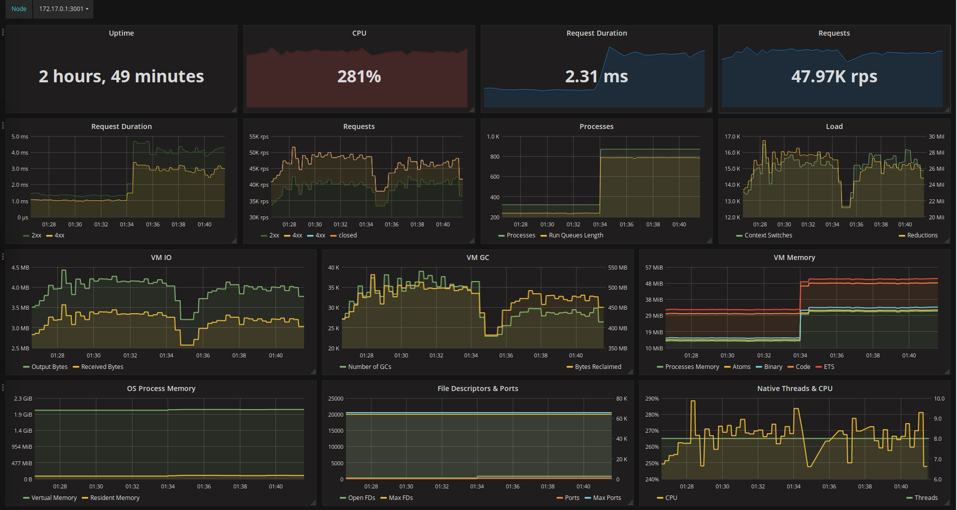 The Elli dashboard uses the prometheus data source to create a Grafana dashboard with the graph and singlestat panels.