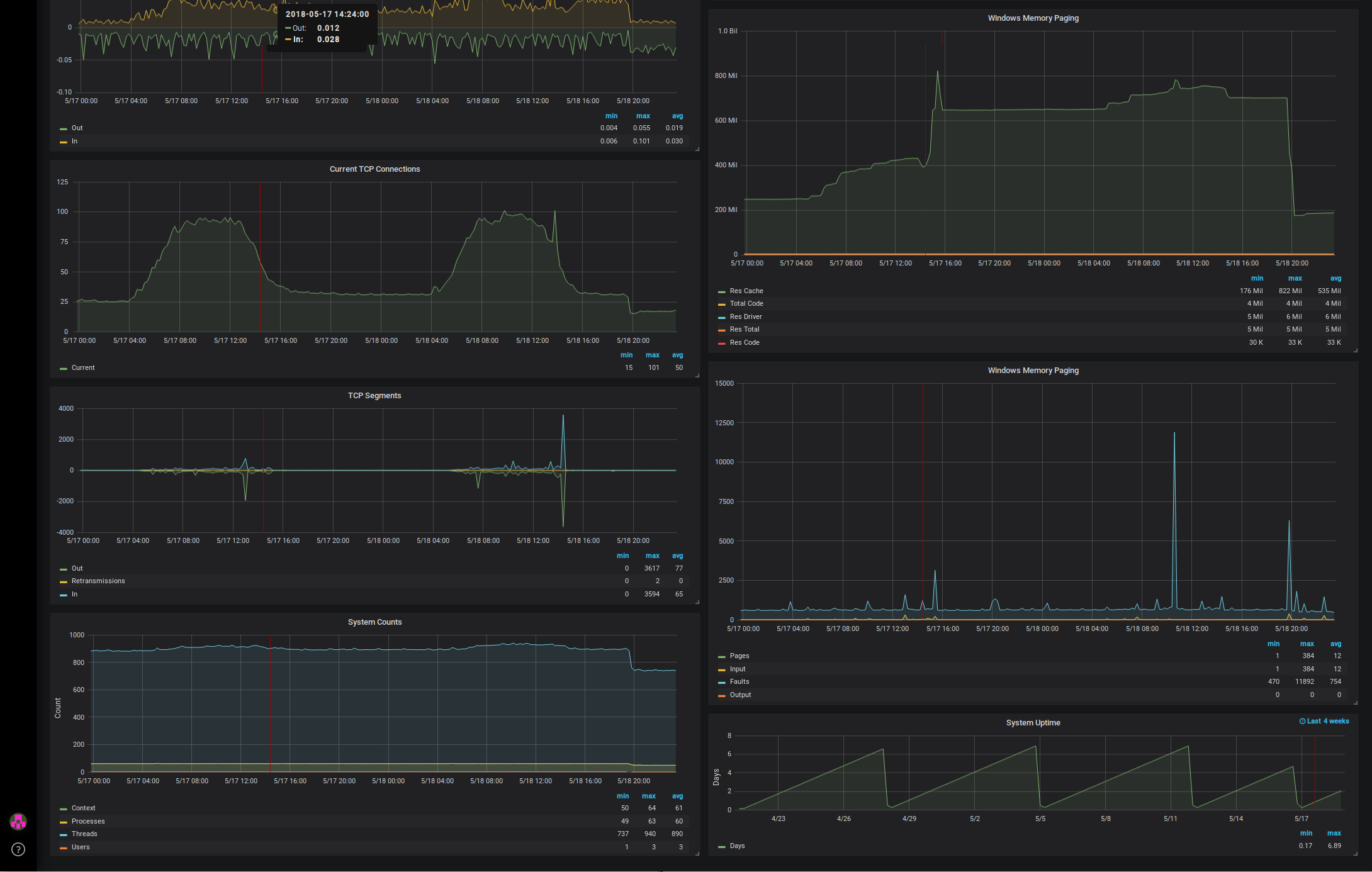 - Uptime graph is set to 4 weeks range to get an idea if reboots happend