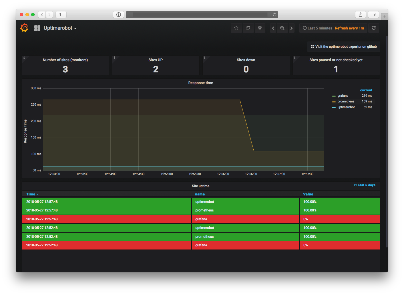 Dashboard for prometheus uptimerobot exporter