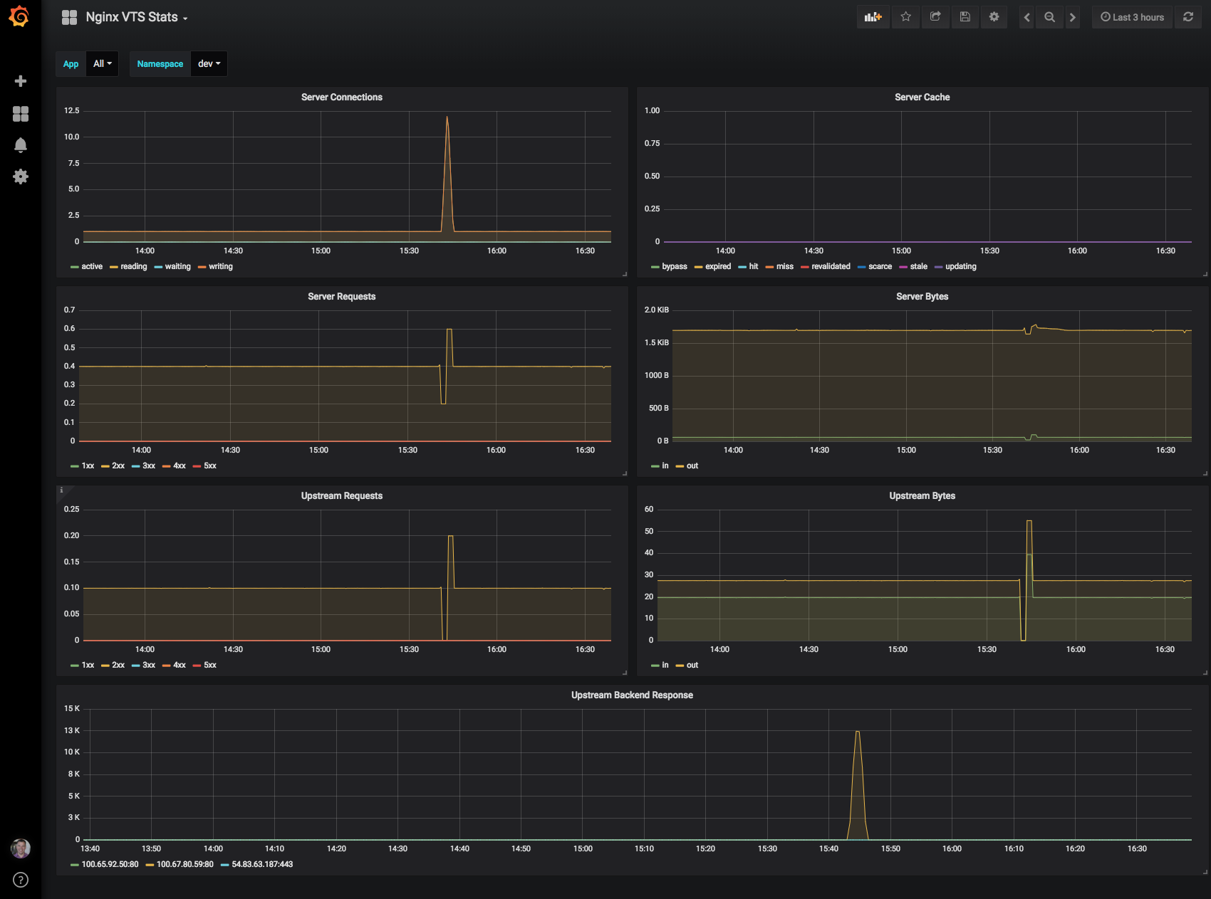 Show stats from the hnlq715/nginx-vts-exporter by Kubernetes namespace and app