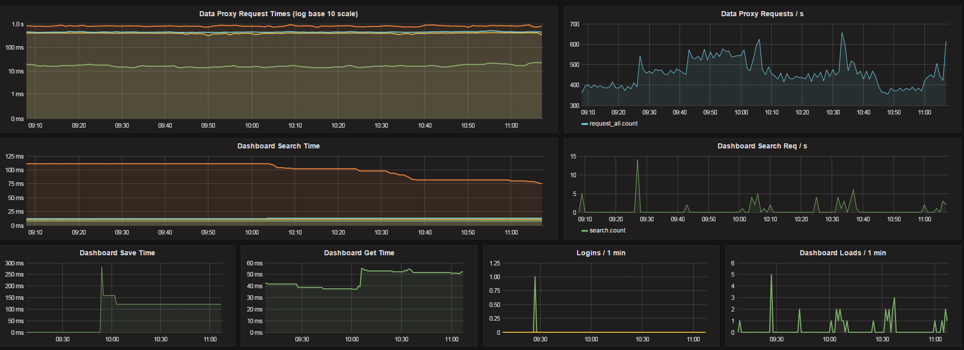 Data Proxy request timings (percentiles), dashboard loads, logins etc, Elasticsearch version.