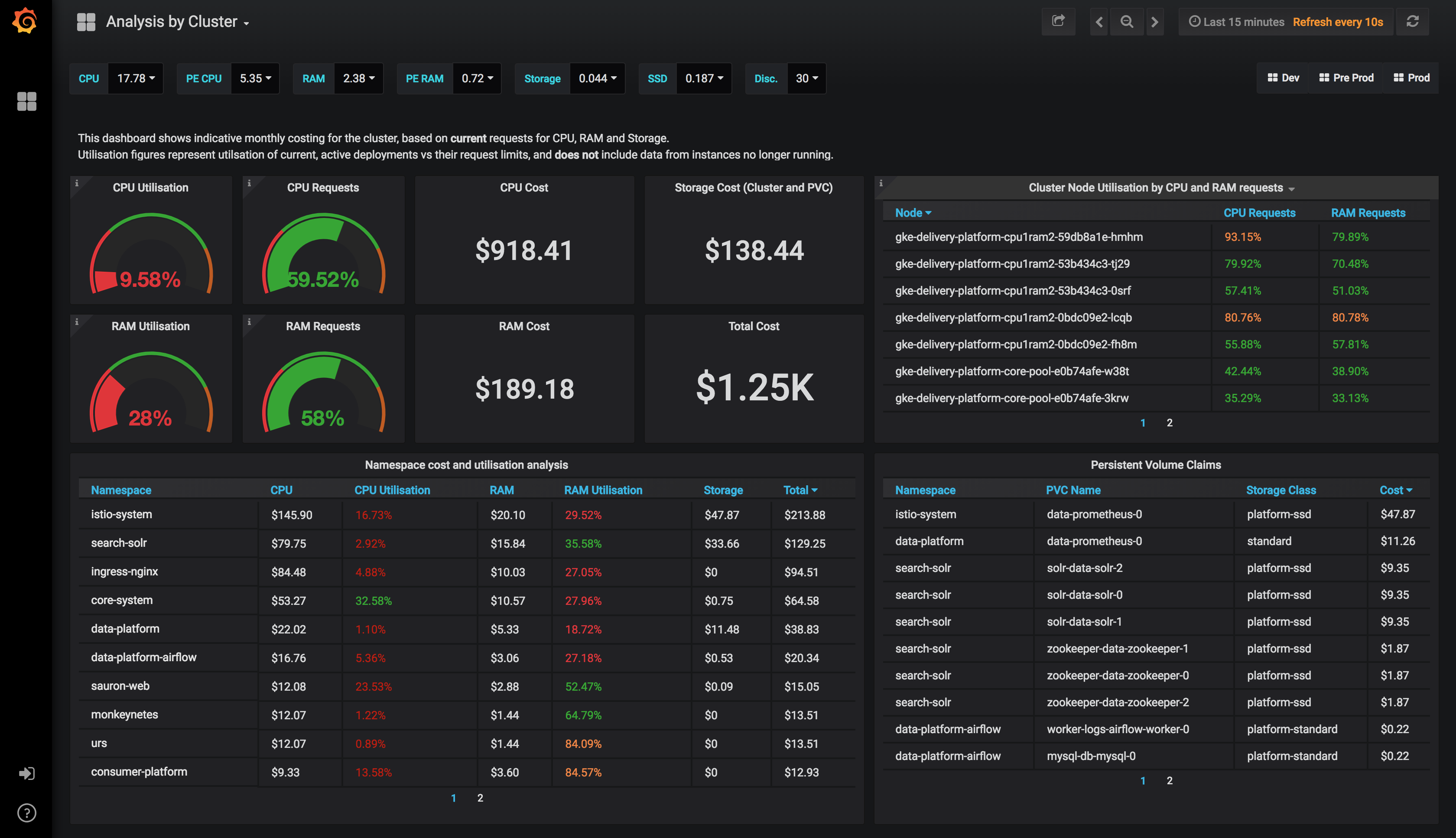 This is part 1 of 3 dashboards to help you visualise cost on kubernetes.