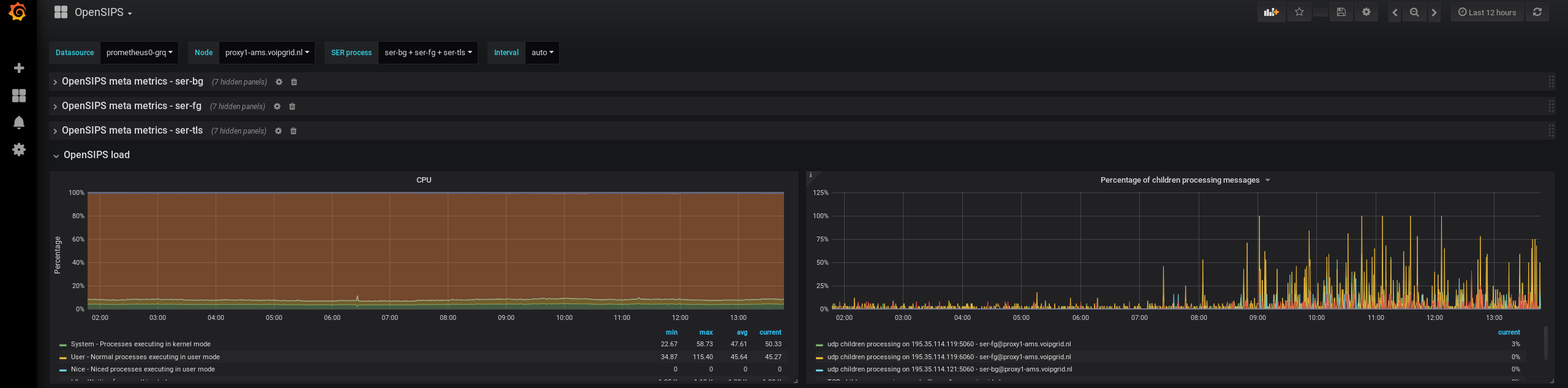 - OpenSIPS load (CPU/UDP & TCP children processing messages)