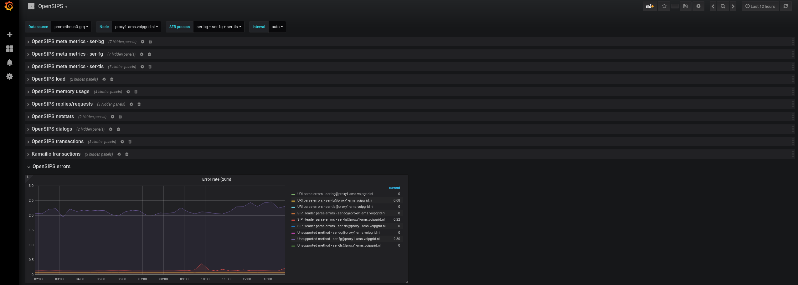In order to get this dashboard to work you need to collect metrics using the OpenSIPS exporter for Prometheus. You can find some examples in the GitHub repo on how to setup the exporter.