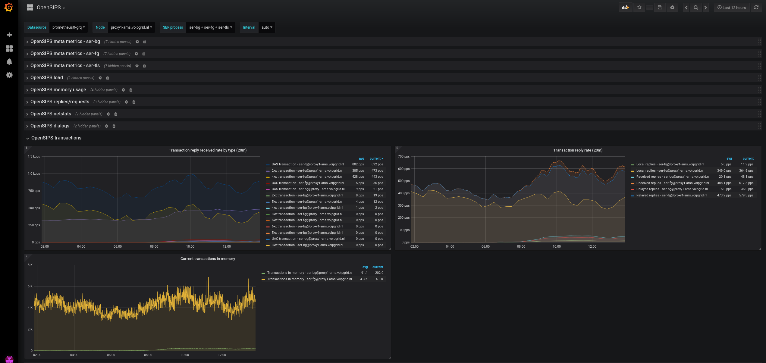 - OpenSIPS transactions (transactions reply rate per type, current transactions in memory)