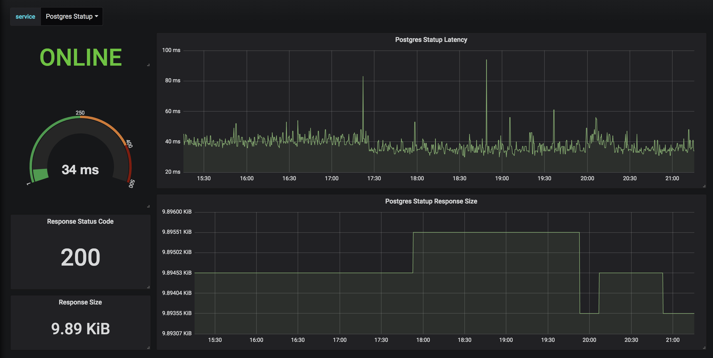 You'll need to have a Statping Server to use this grafana dashboard. You can run Statping in a docker container for ease of use.