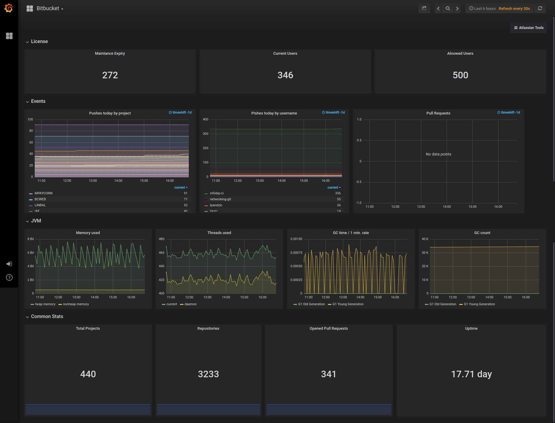 Nearly all values exported by Prometheus Exporter For Bitbucket. Available on github: https://github.com/AndreyVMarkelov/prom-bitbucket-exporter