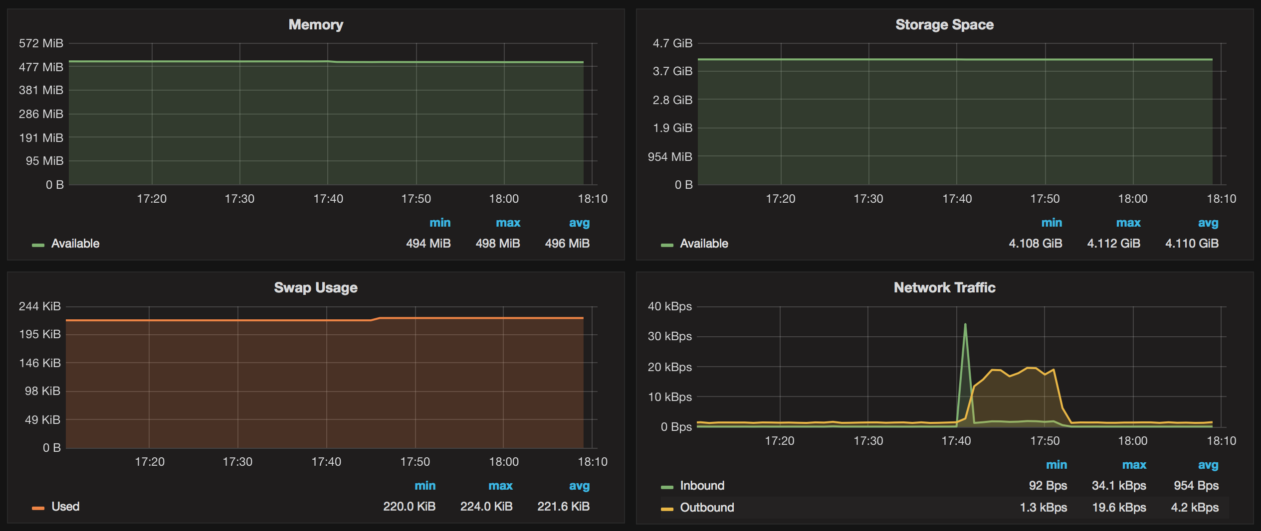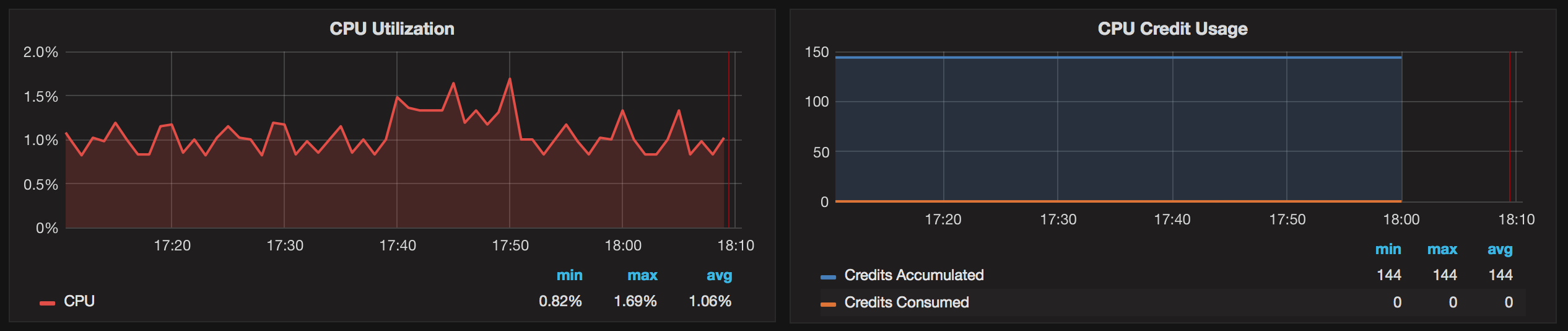 It uses 60s resolution and shows an average over each datapoint. An exception is “CPU Credit Usage” graph which has 5 min. average and interval length.