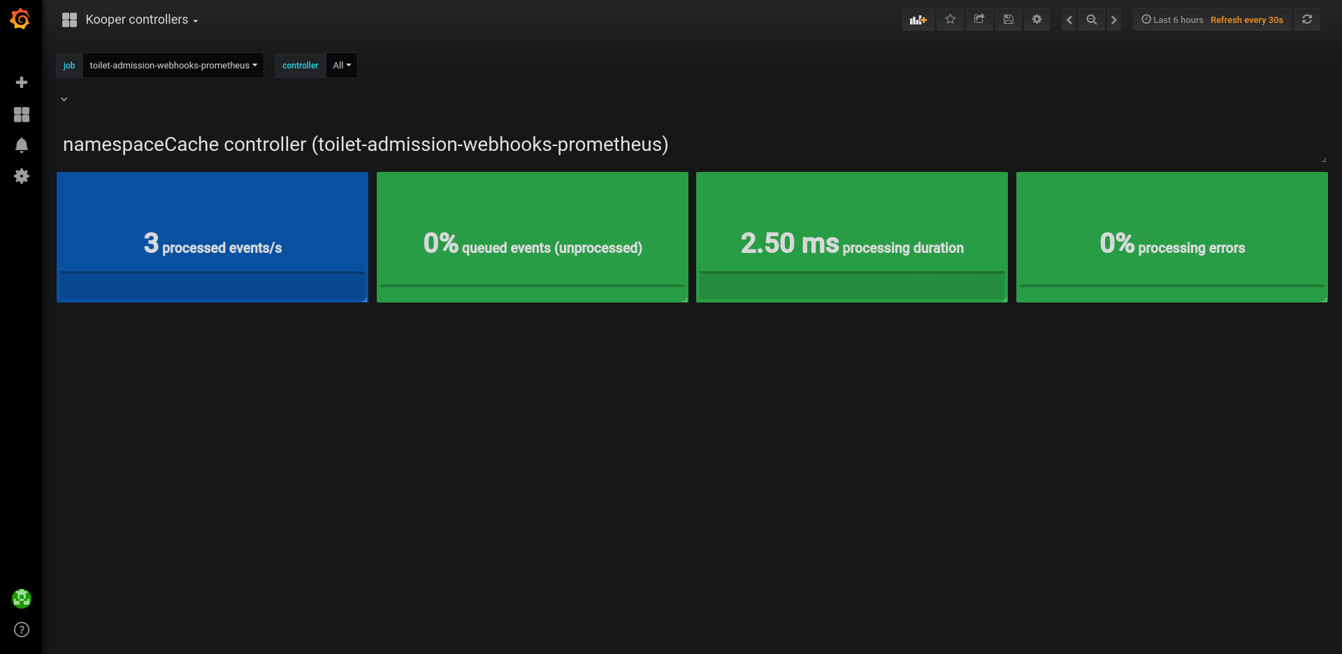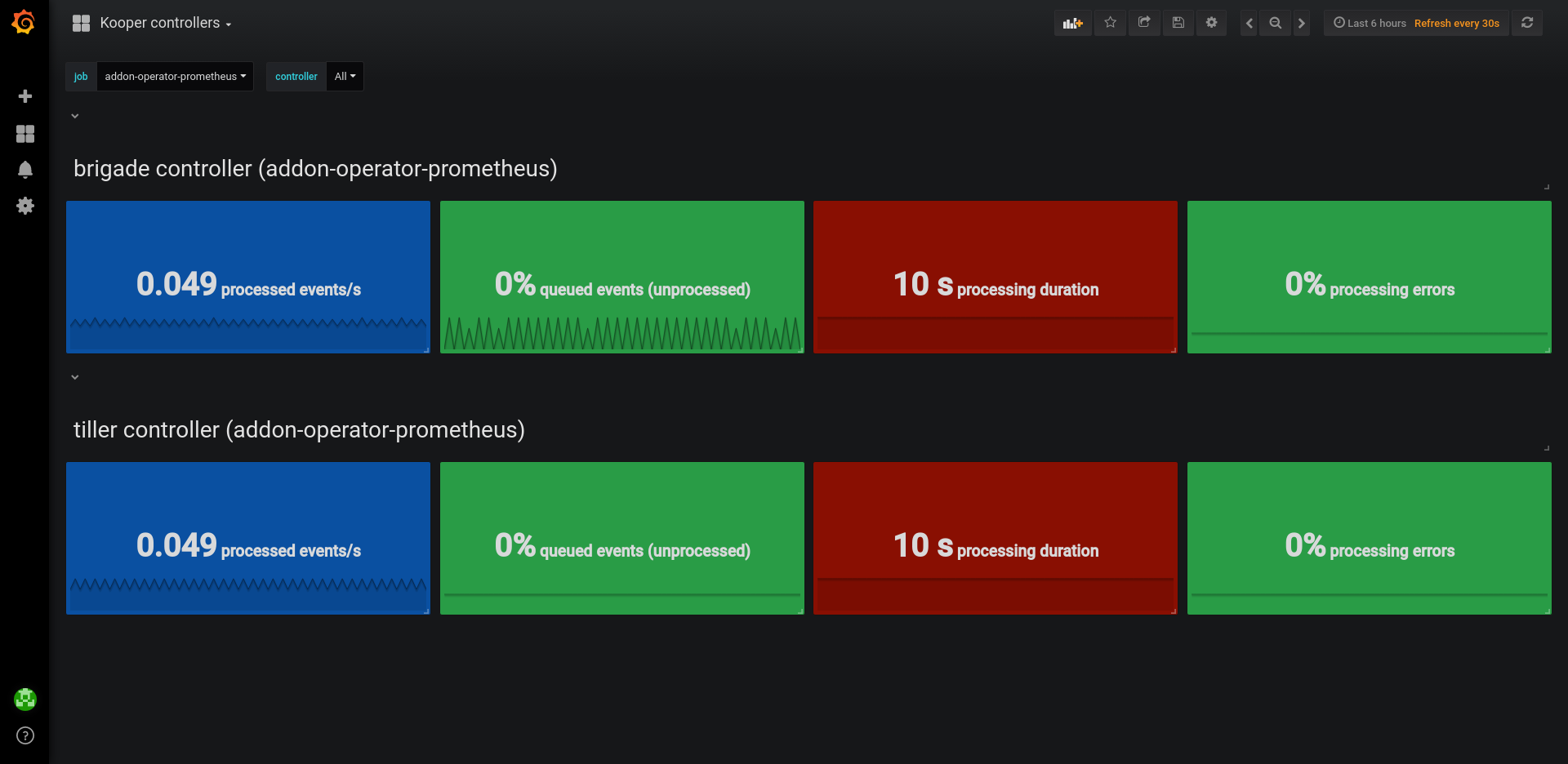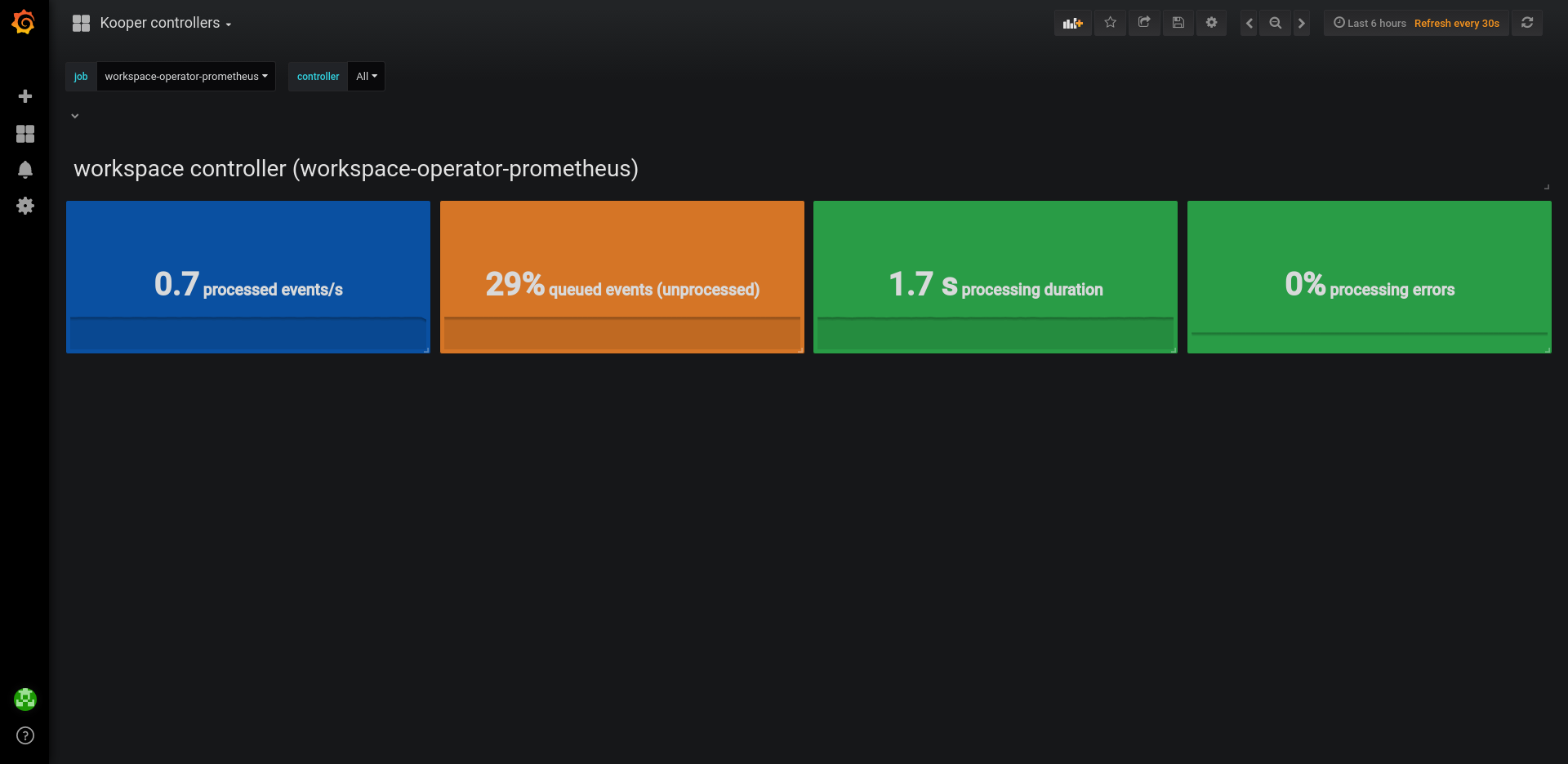 A simple dashboard to check how Kubernetes controllers and operators are performing. This Is based on the metrics exposed by Kooper framework. Kooper is a framework to create Kubernetes operators and controllers.