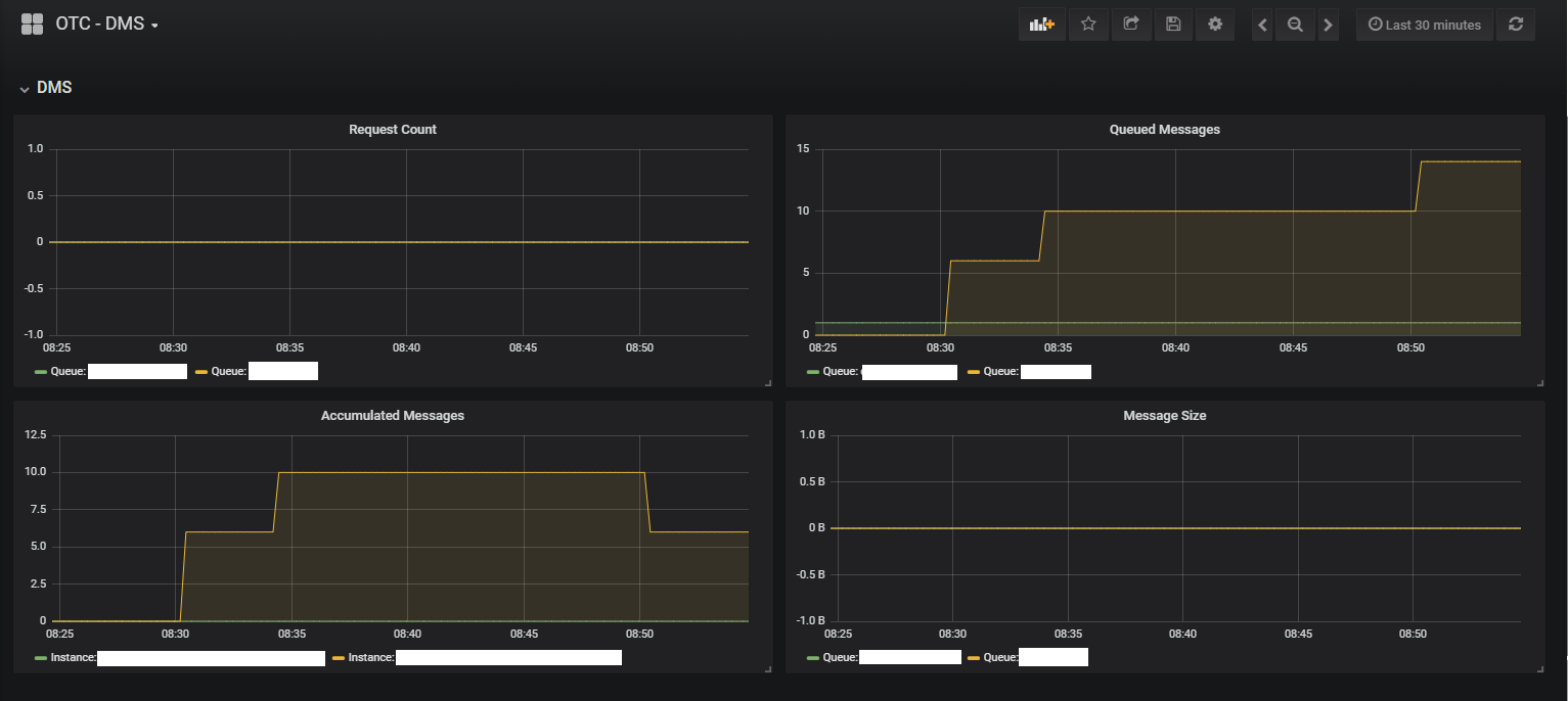 Open Telekom Cloud (OTC) Distributed Message Service (DMS) Dashboard