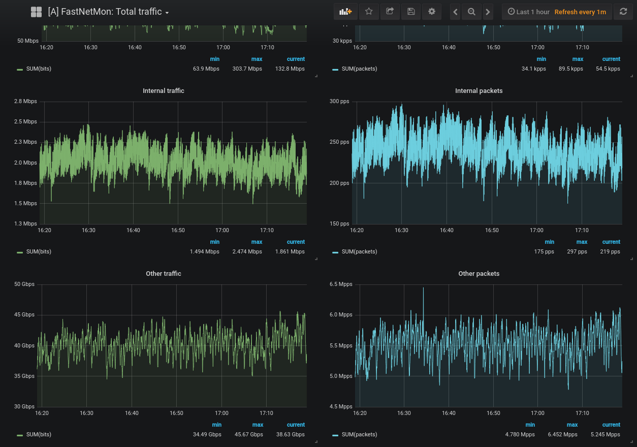 Metrics of FastNetMon Advanced with ClickHouse DB.