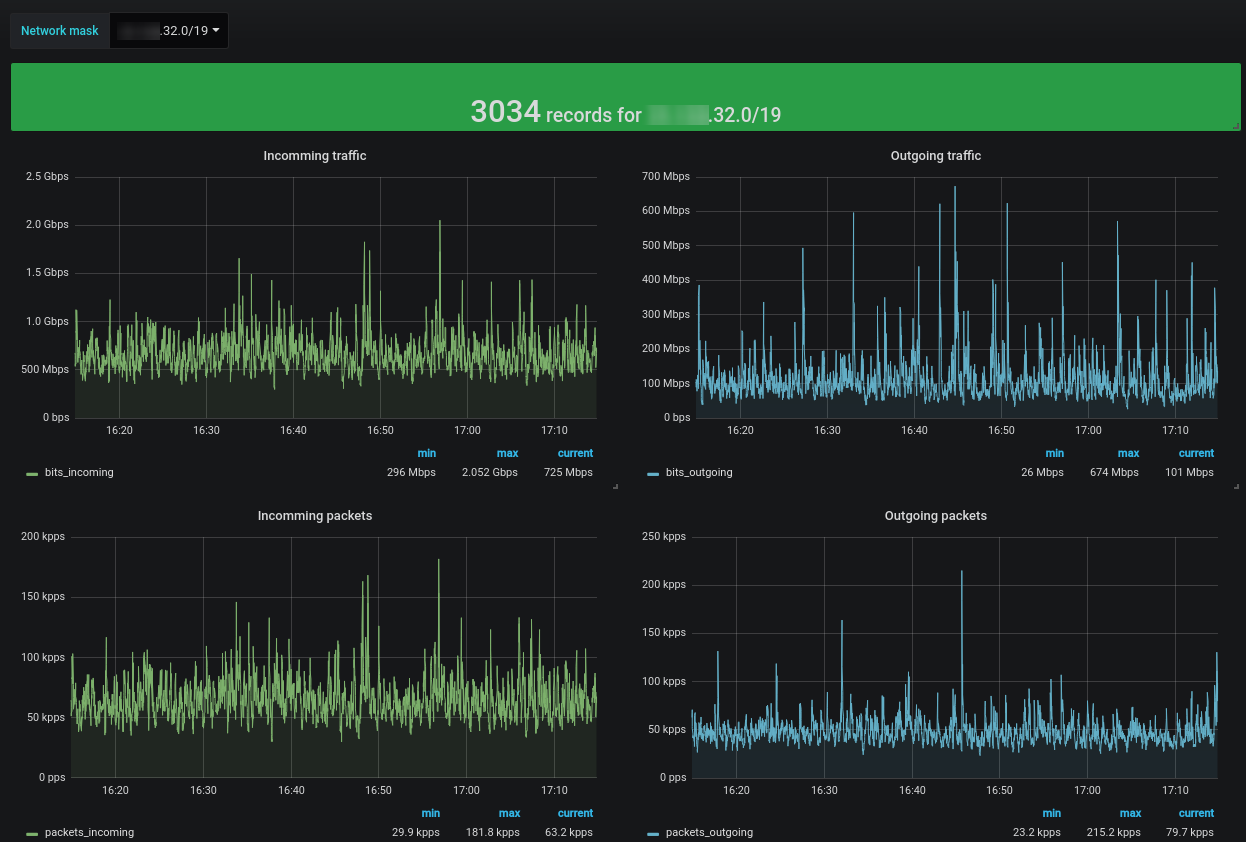 Metrics of FastNetMon Advanced with ClickHouse DB.