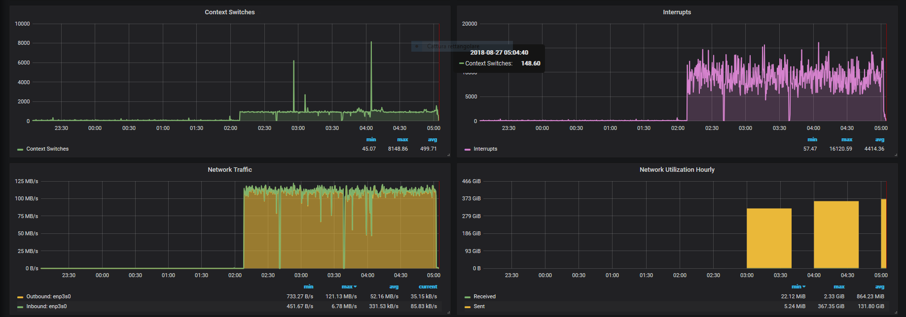 Prometheus for system metrics. Load, CPU, RAM, network, process ...