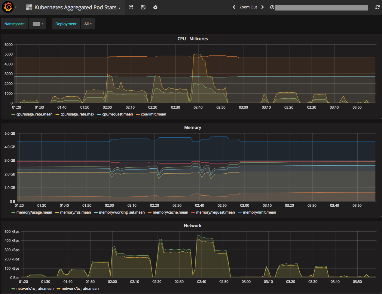 Kubernetes Aggregated Pod Stats by Namespace and Deployment
